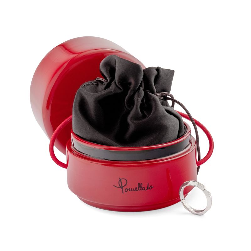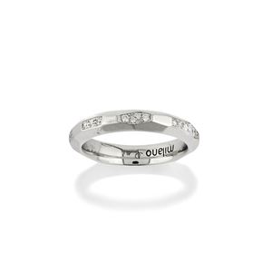 in oro bianco 18ksquadrato, con dettagli in diamanti taglio brillante per totale ct 0,15, con scatola.