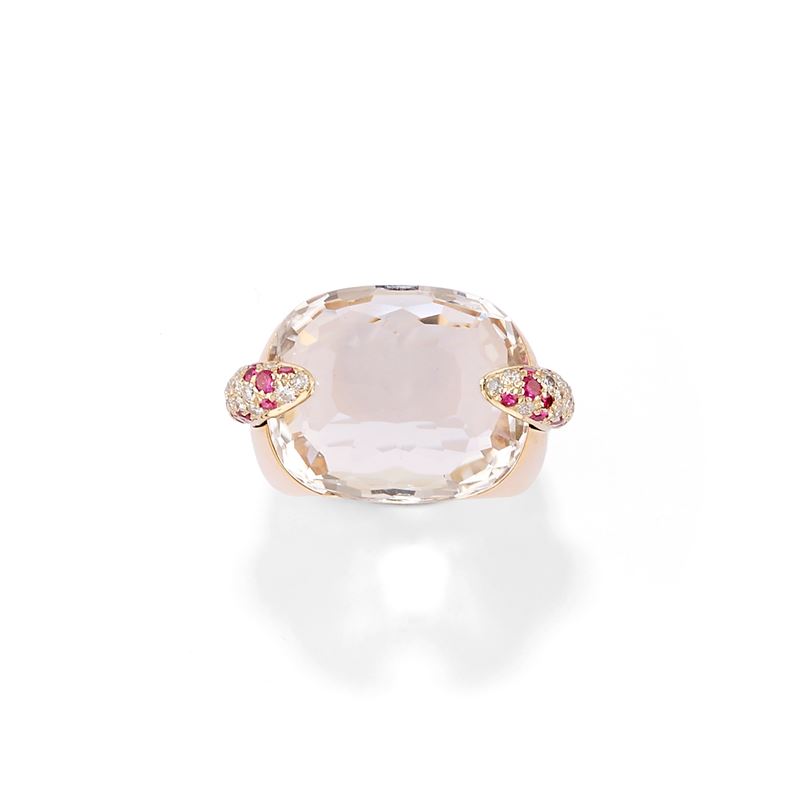 con cristallo di rocca, rubini e diamanti.