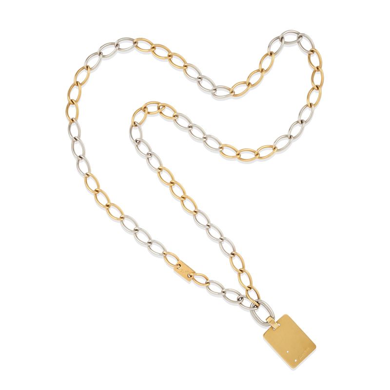 catena a maglie ovali,  firmata Pomellato, con pendente rettangolare firmato Giò Caroli.