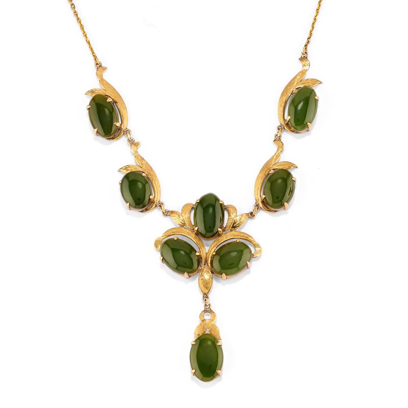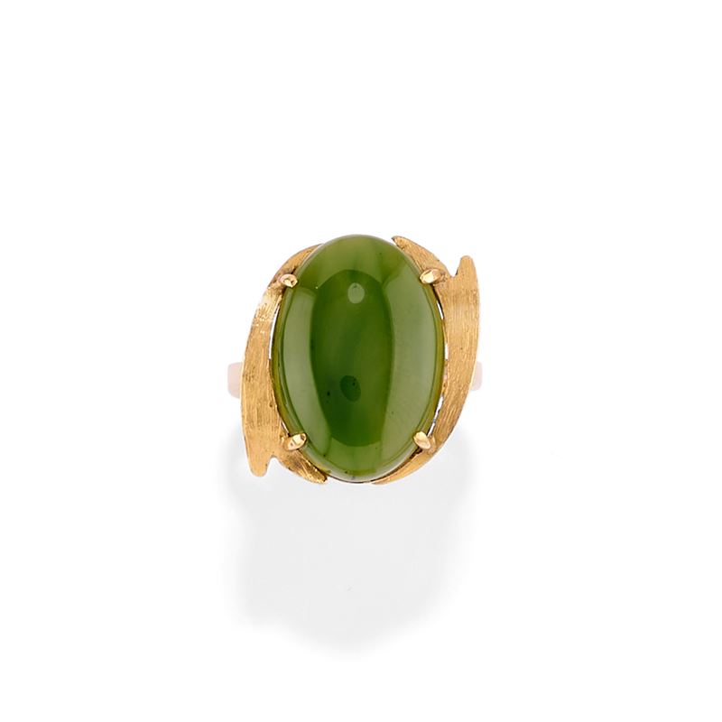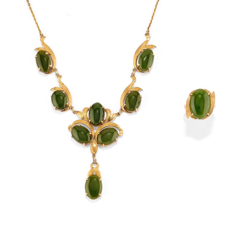 in oro giallo 18kcomposta da collana e anello con giade taglio ovale cabochon.