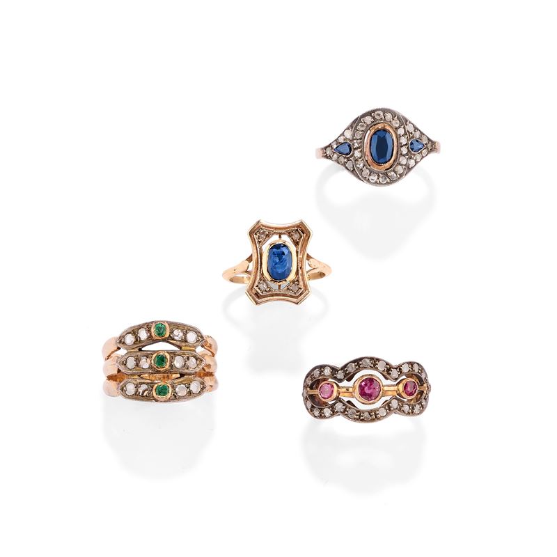 Quattro anelli con pietre di colore