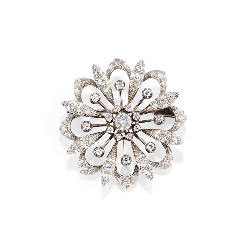 in oro bianco 18kdi gusto floreale con diamanti taglio brillante e huit-huit per totale ct 1,00 circa.