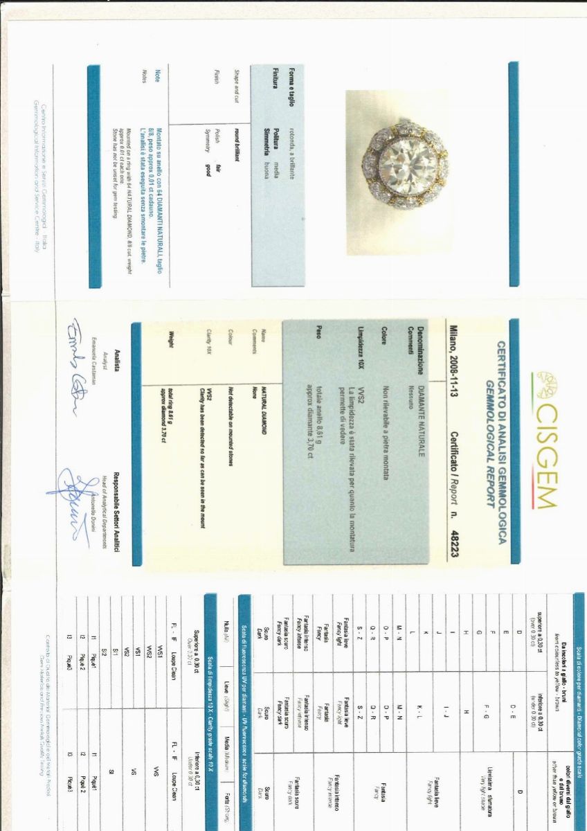 Dichiarazione di valore ad uso assicurativo Mario Buccellati, del 18 Ottobre 2006.