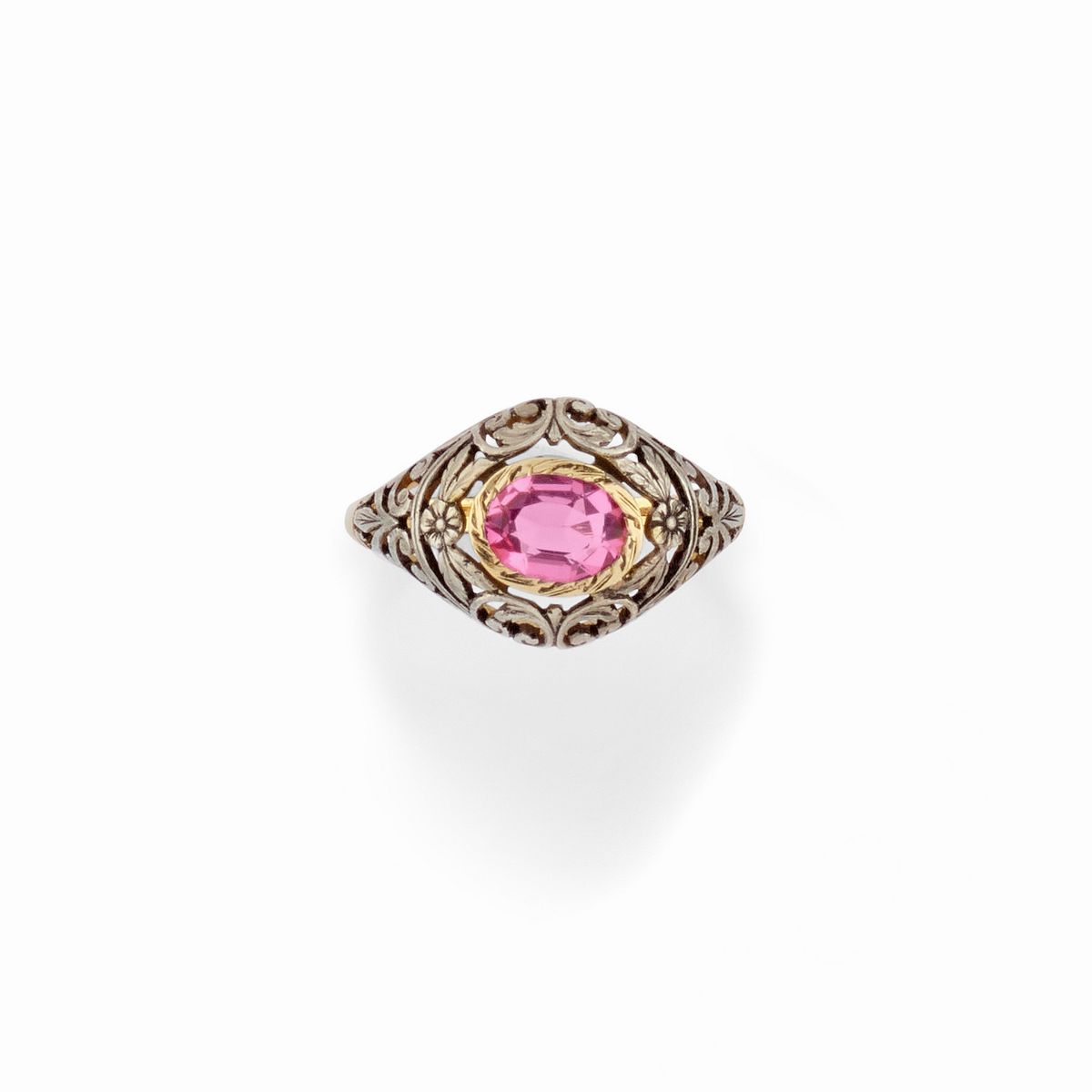 Cinque anelli, due orecchini, un pendente e una spilla in oro basso titolo, argento, smalti, perle e pietre sintetiche