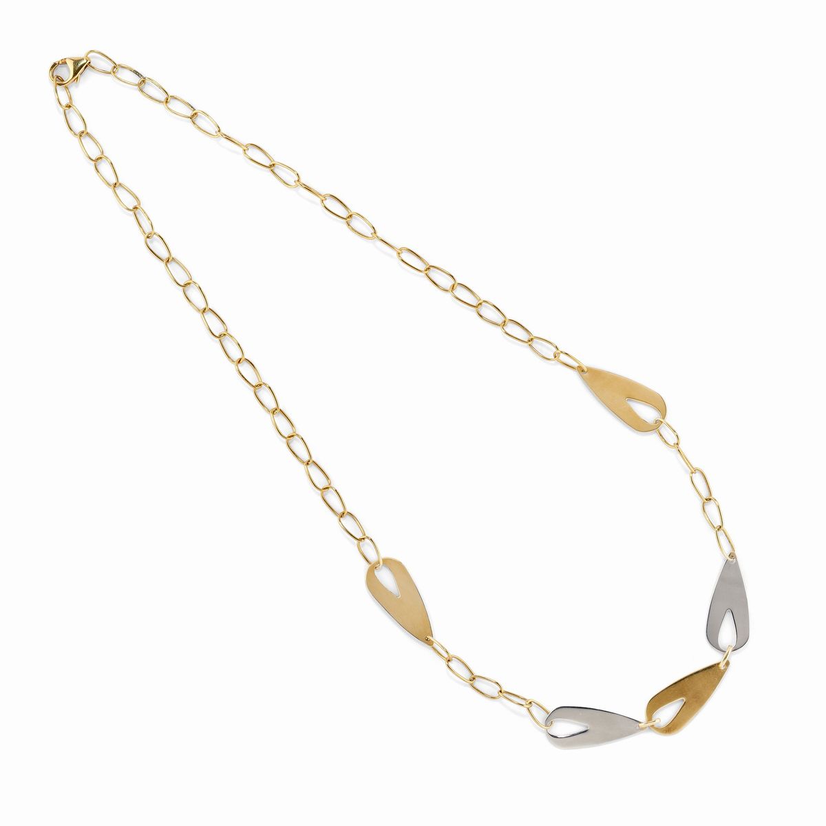 Collana, orecchini e anello in oro bicolore 18K e diamanti