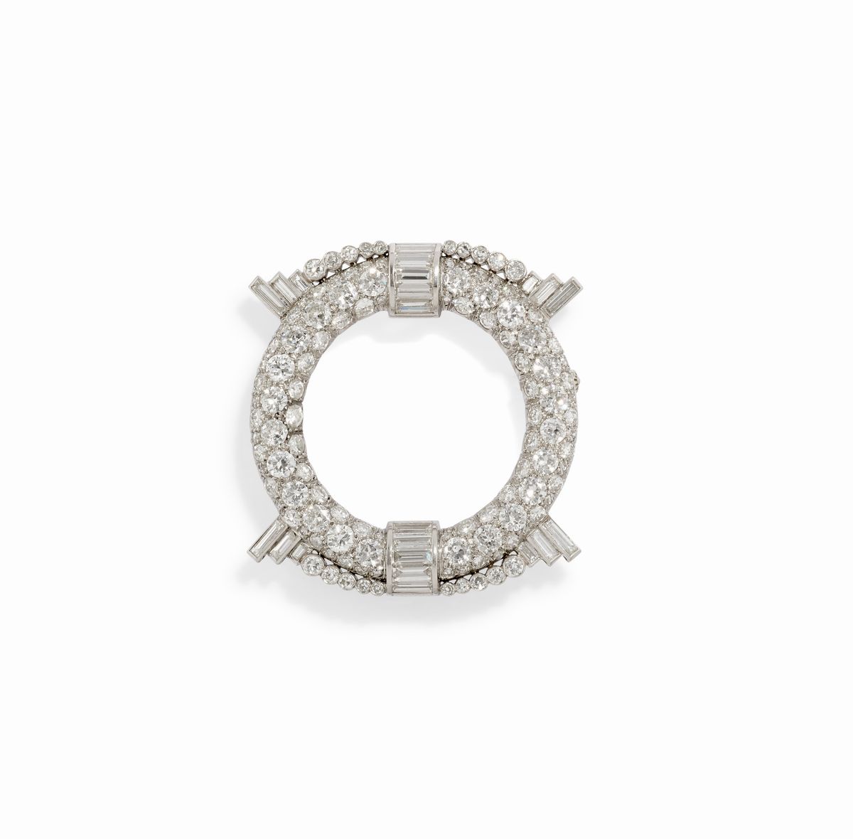 Gioiello scomponibile in platino, oro bianco 18K e diamanti, 1940 circa