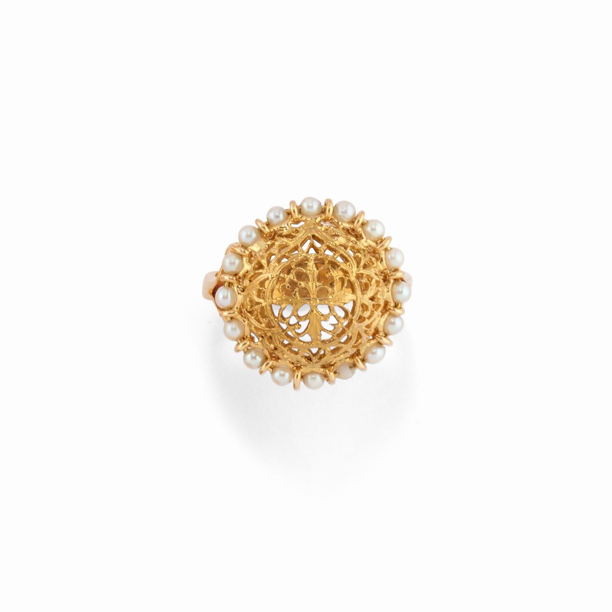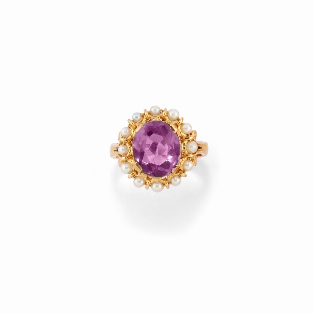 Otto anelli in oro giallo 18K, pietre colorate e perle