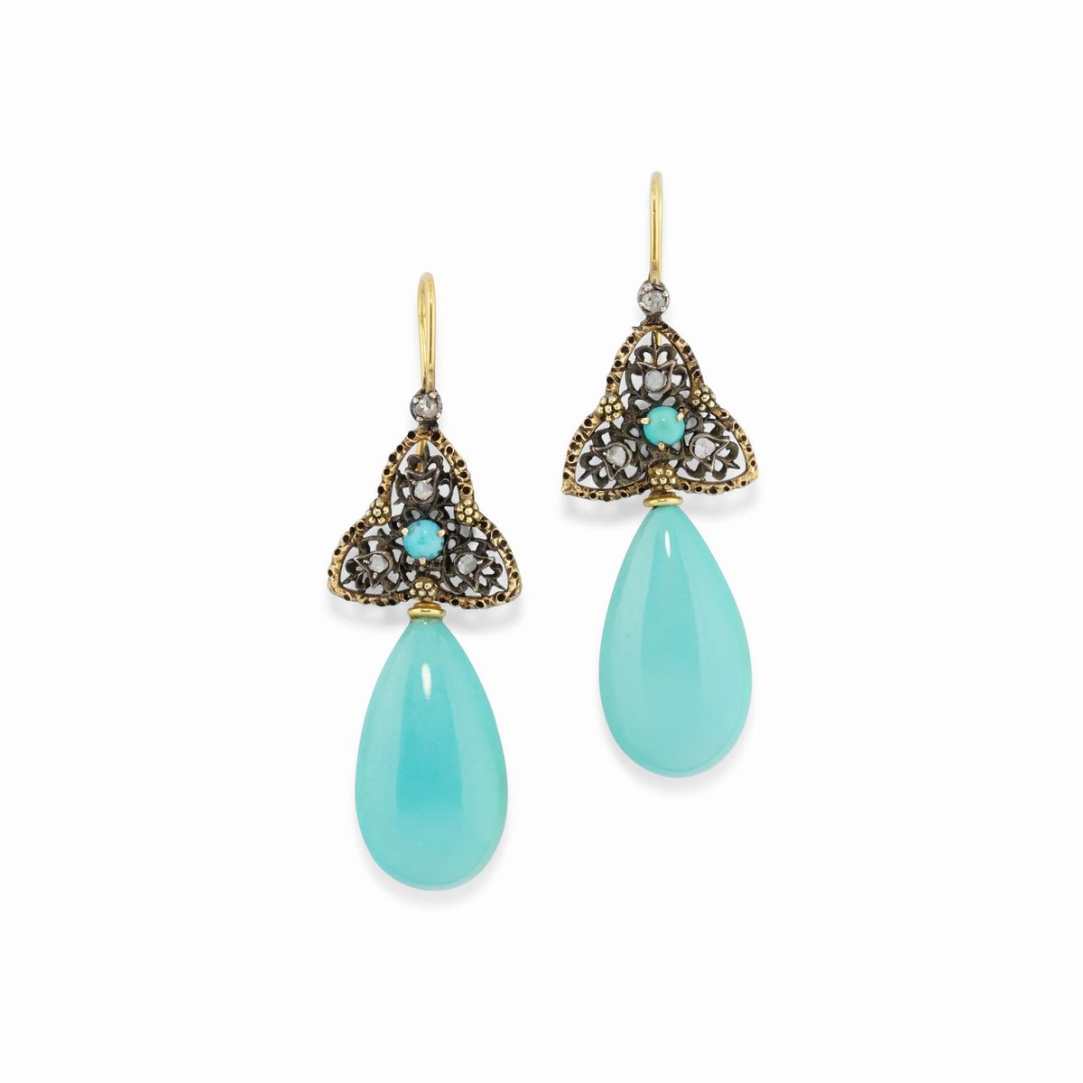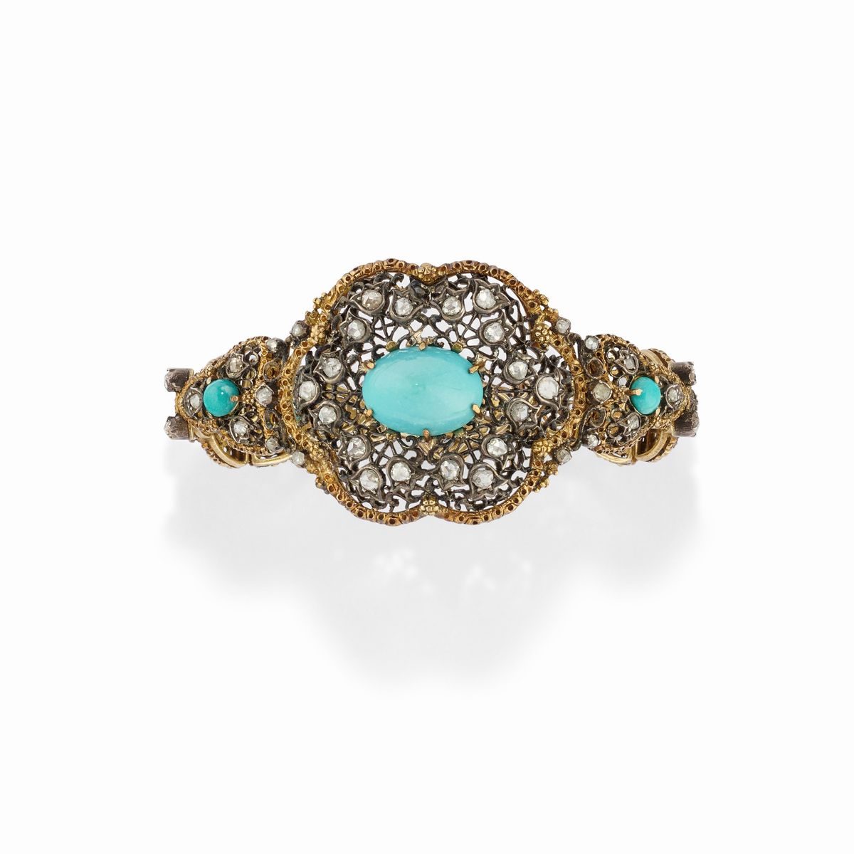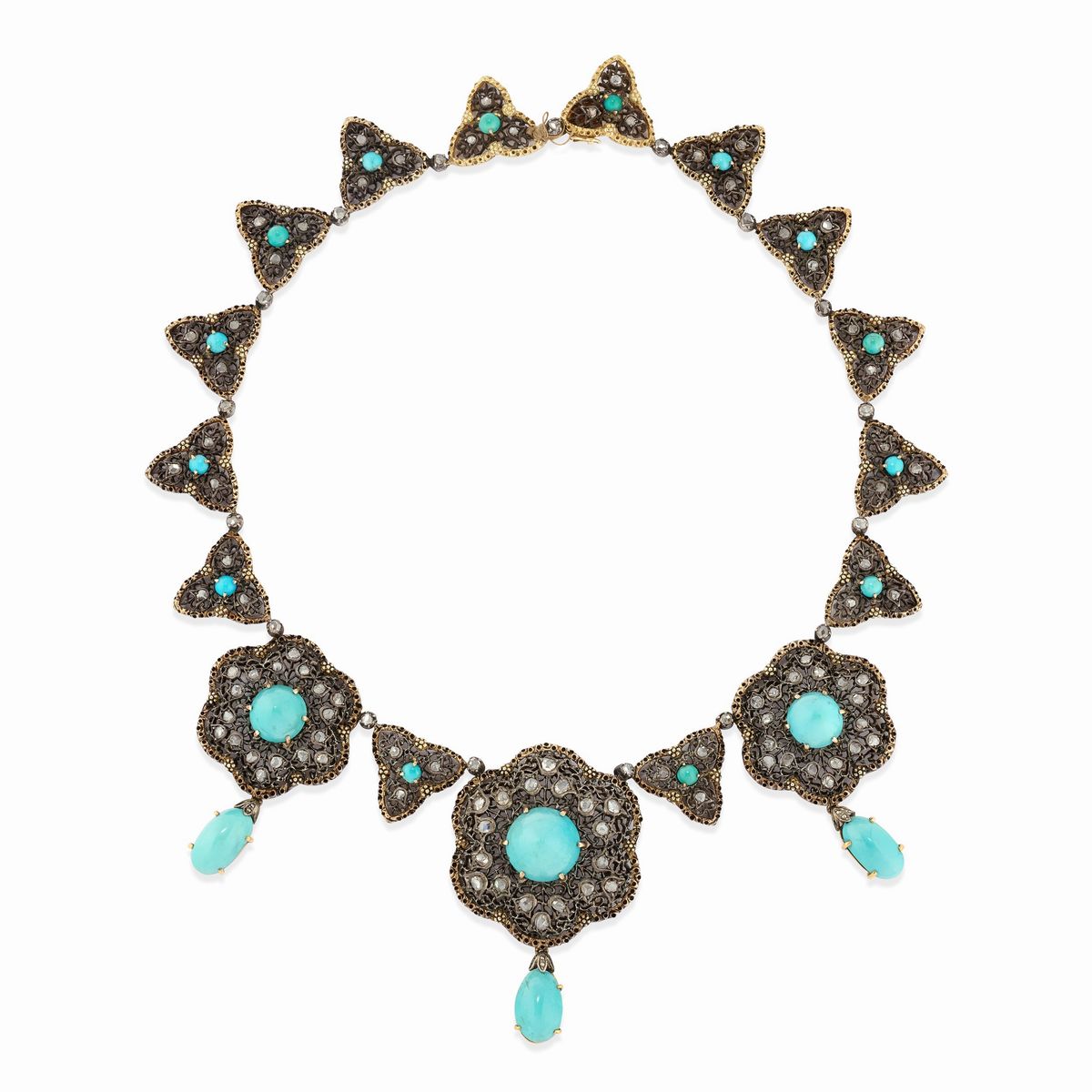 Parure in argento e oro giallo 18K con turchesi e diamanti, fine XIX secolo
