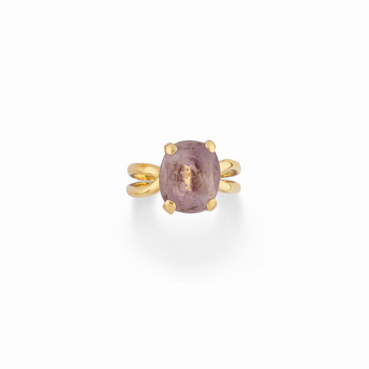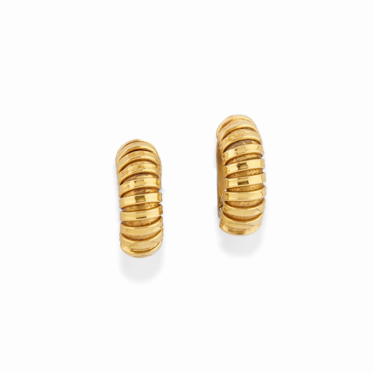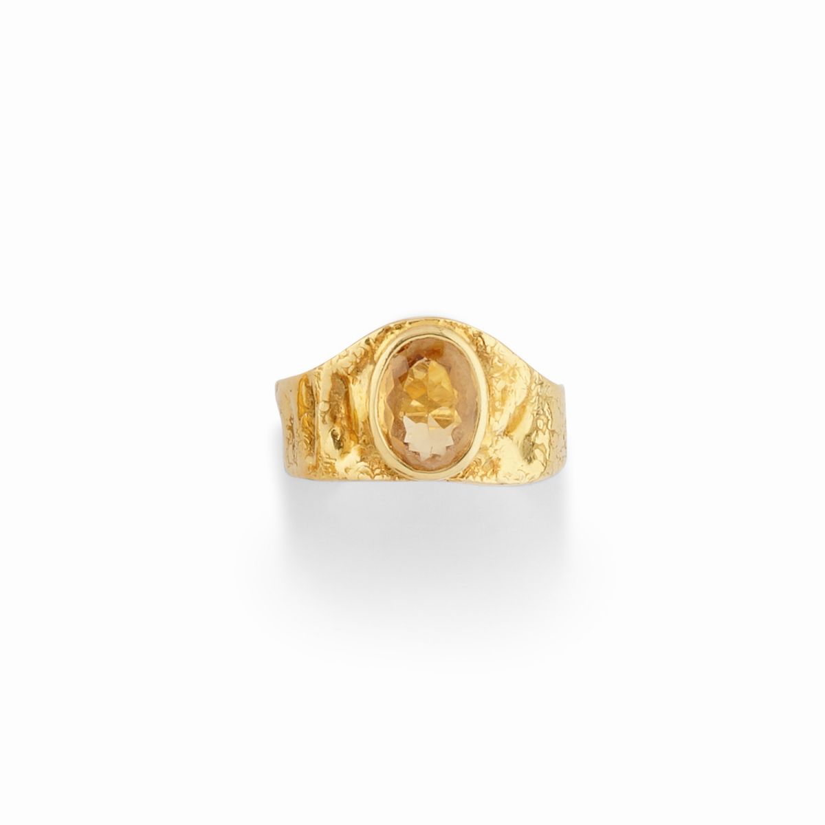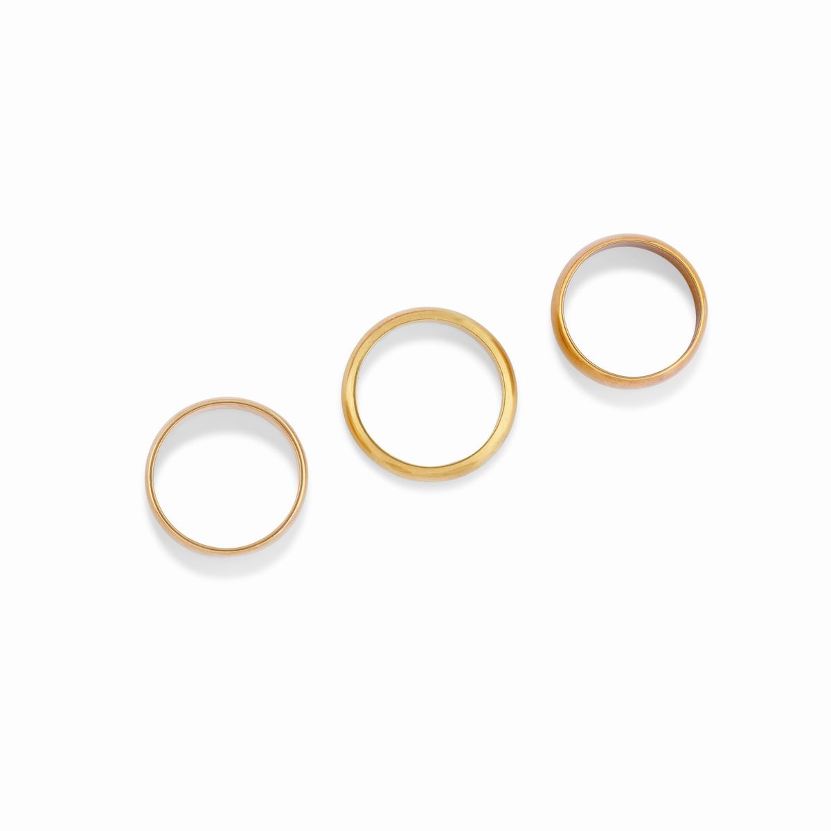 tre fedi, un anello a scudo e tre anelli con pietre colorate taglio ovale sfaccettato, orecchini con chiusura a clip.