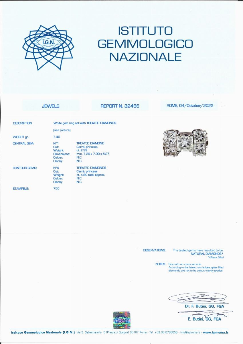 a cupola con smeraldo taglio rettangolare a contorno ottagonale di ct 1,00 circa, contorno in diamanti taglio brillante per totale ct 1,20 circa.