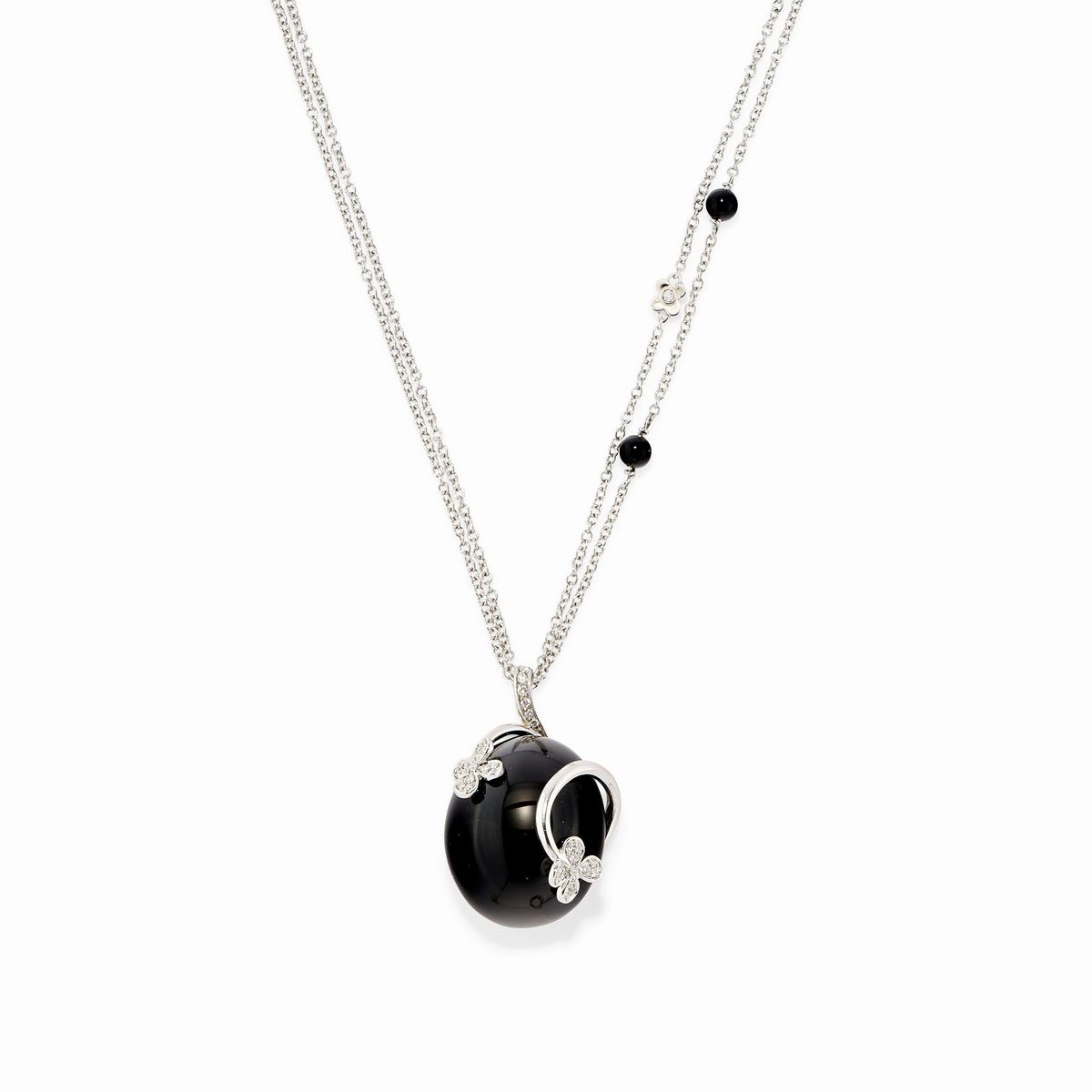Cinque gioielli in oro bianco 18k, diamanti, onice e agata bianca