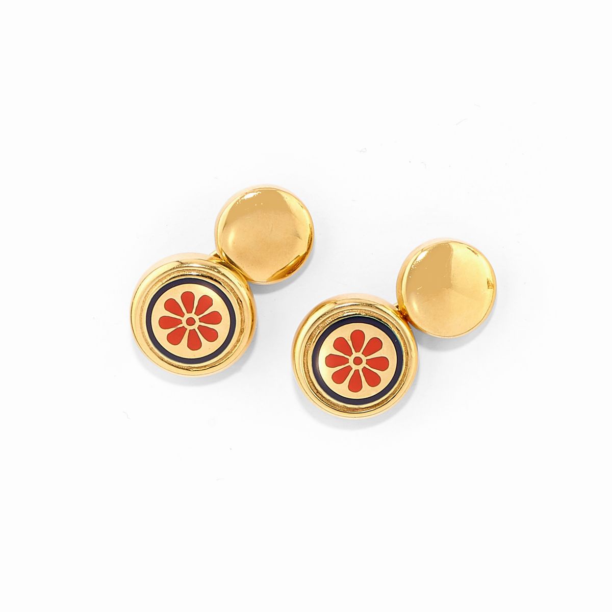 Due coppie di polsini in oro giallo 18k e smalto