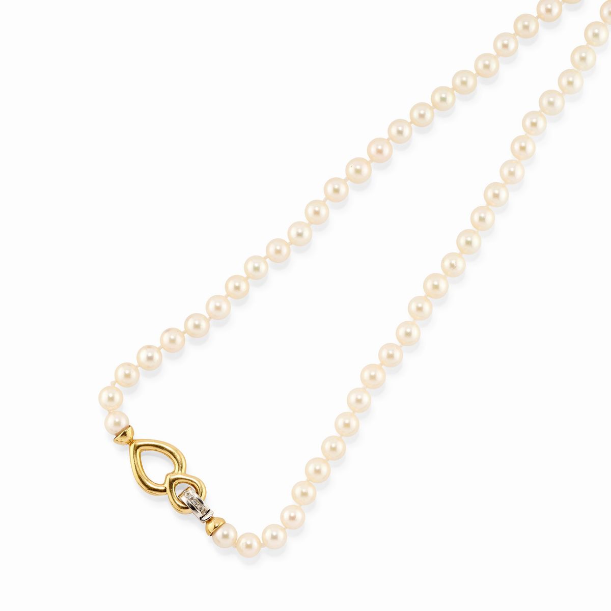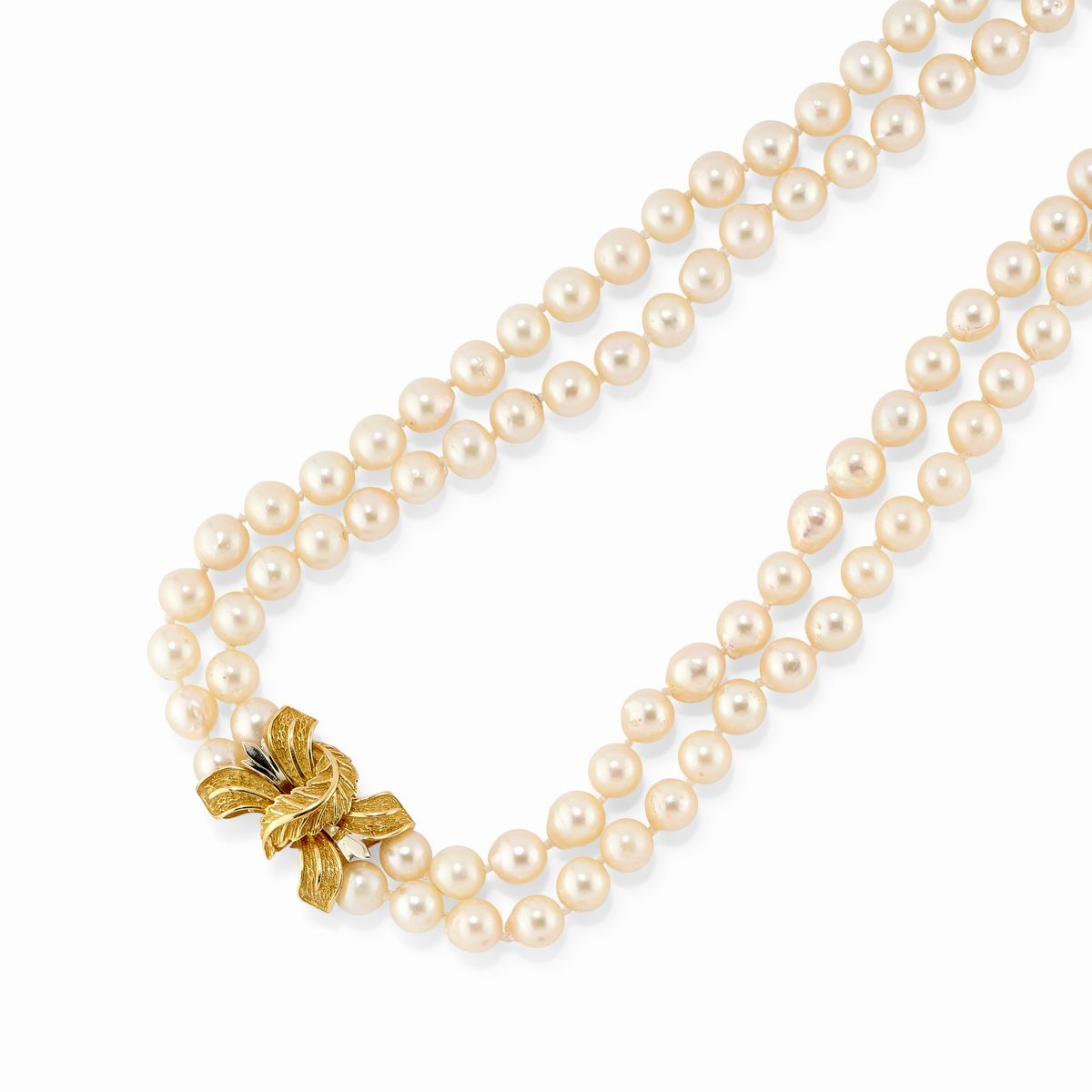 una ad un filo di perle coltivate con interruttori in rubini taglio rotondo, una a doppio filo di perle coltivate, una ad un filo di perle coltivate e diamanti taglio brillante.