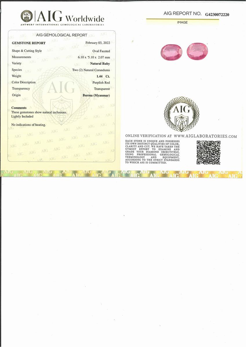 I rubini che non presentano indicazioni di trattamento termico sono accompagnati da certificato gemmologico n. G4230072220 del 3 Febbraio 2022 AIG Anversa