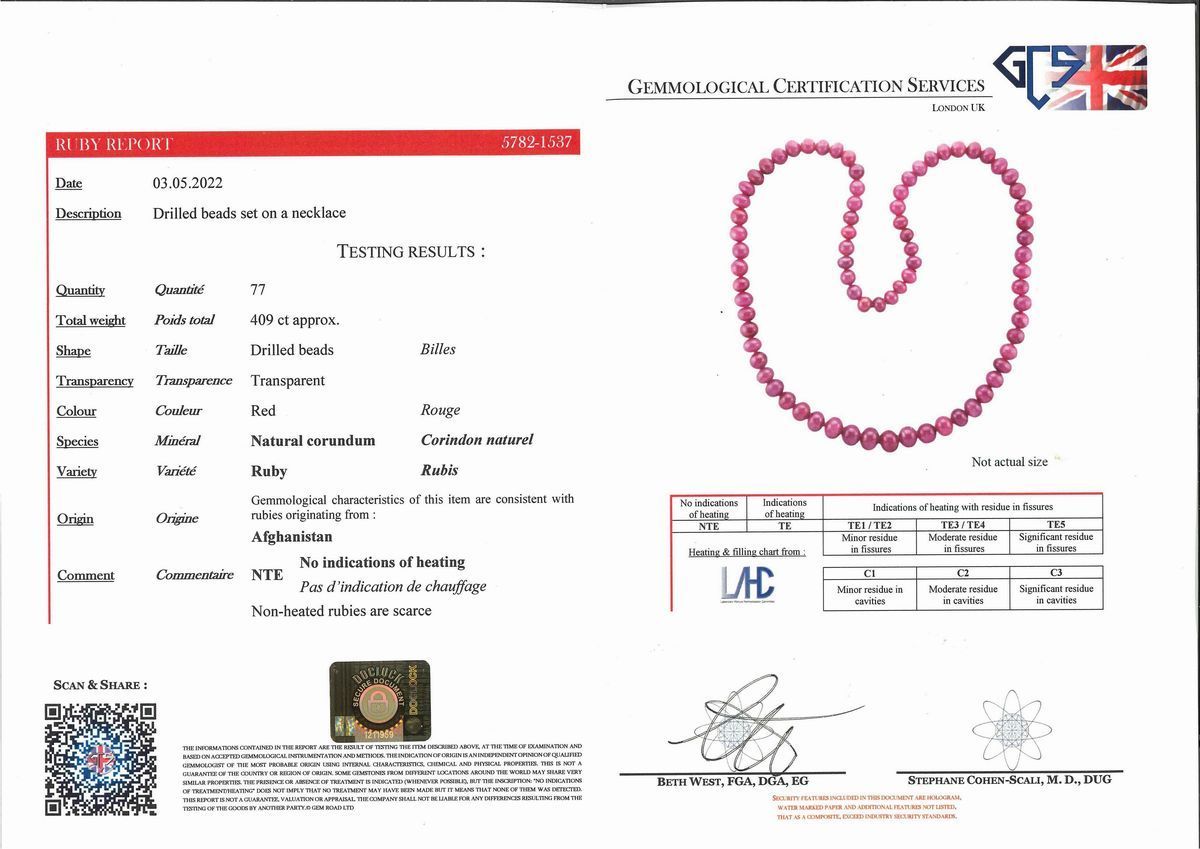 ad un filo di rubini Afghanistan per totale ct 409,00 circa.