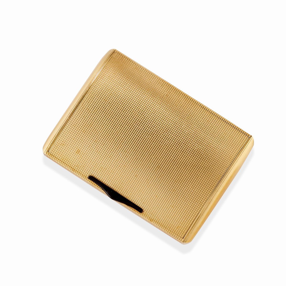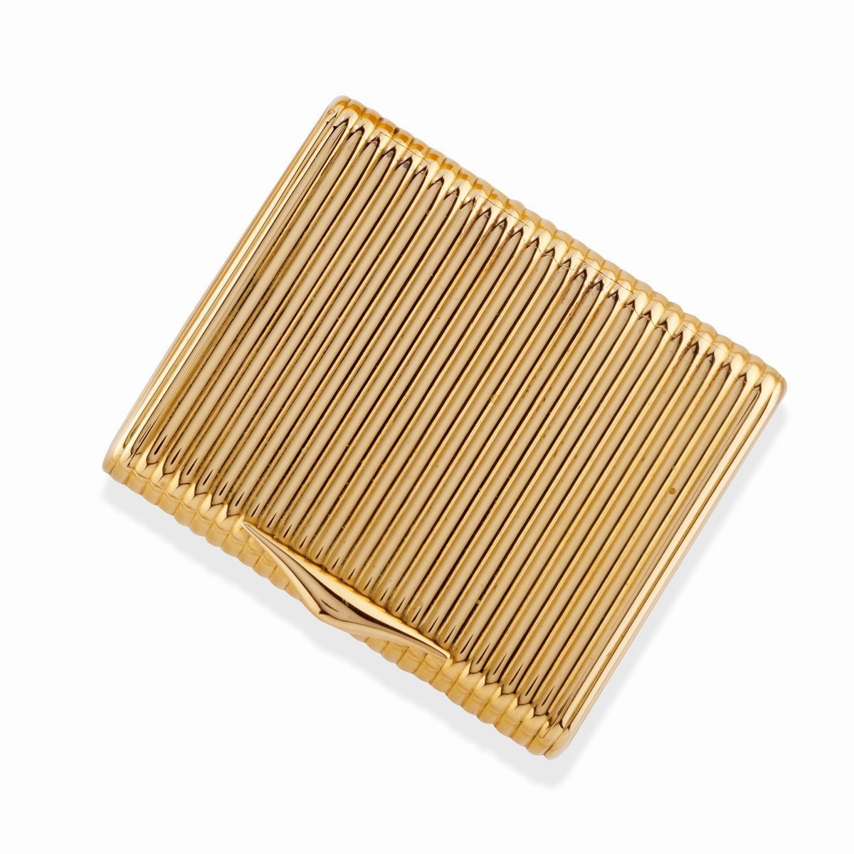in oro giallo 18kdi forme rettangolari, una con decoro scanalato e l'altra con decoro quadrettato e smalto nero.