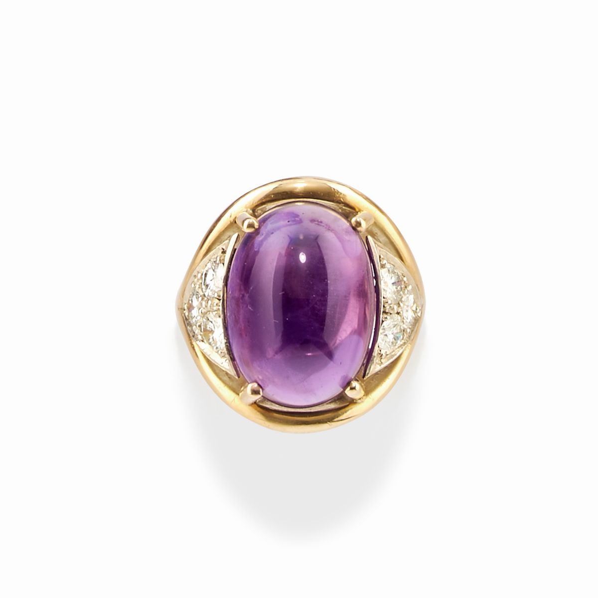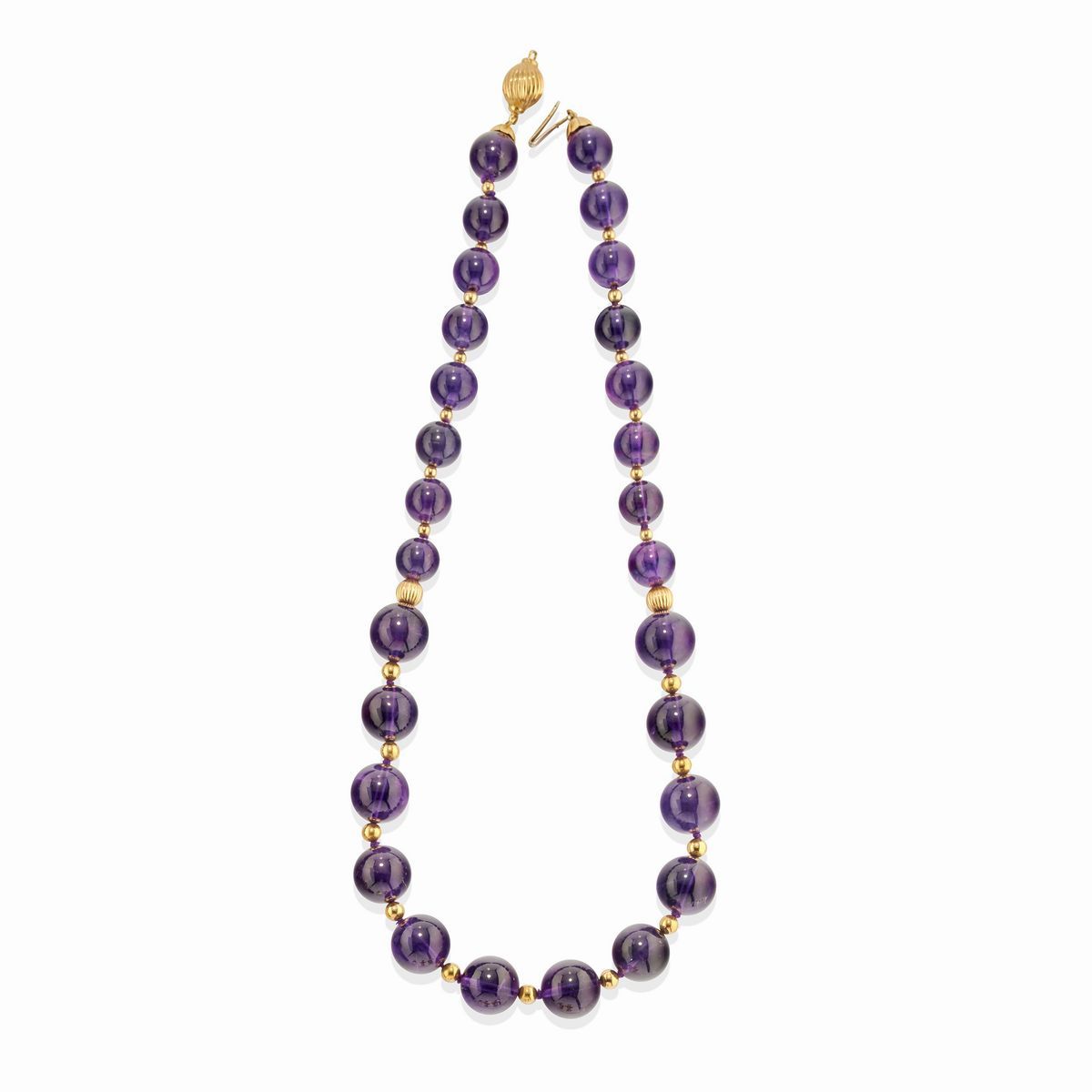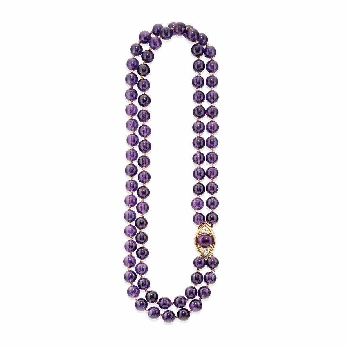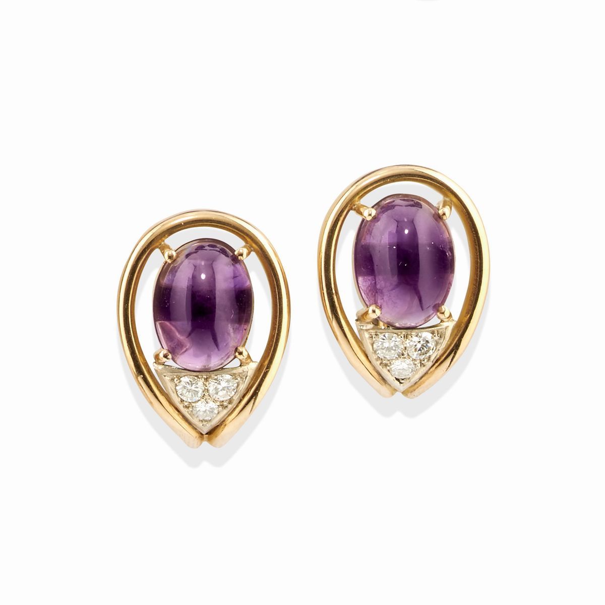 in oro bicolore 18kcomposta da una collana a due fili di boules di mm 13,00 circa, una collana con boules a degradé dal centro di mm 13,00/10,00 circa, un anello e una coppia di orecchini con chiusura perno e clip, diamanti taglio brillante per totale ct 2,50 circa.
