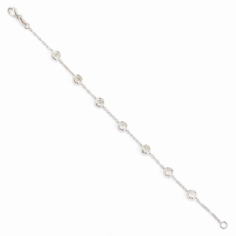in oro bianco 18kmaglia ad anelli con sette diamanti taglio brillante per totale ct 1,70 circa entro castoni a cipollina.