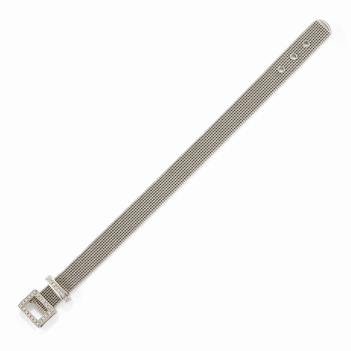 in oro bianco 18kcomposta da anello e bracciale con lavorazione a tessuto con diamanti taglio brillante.
