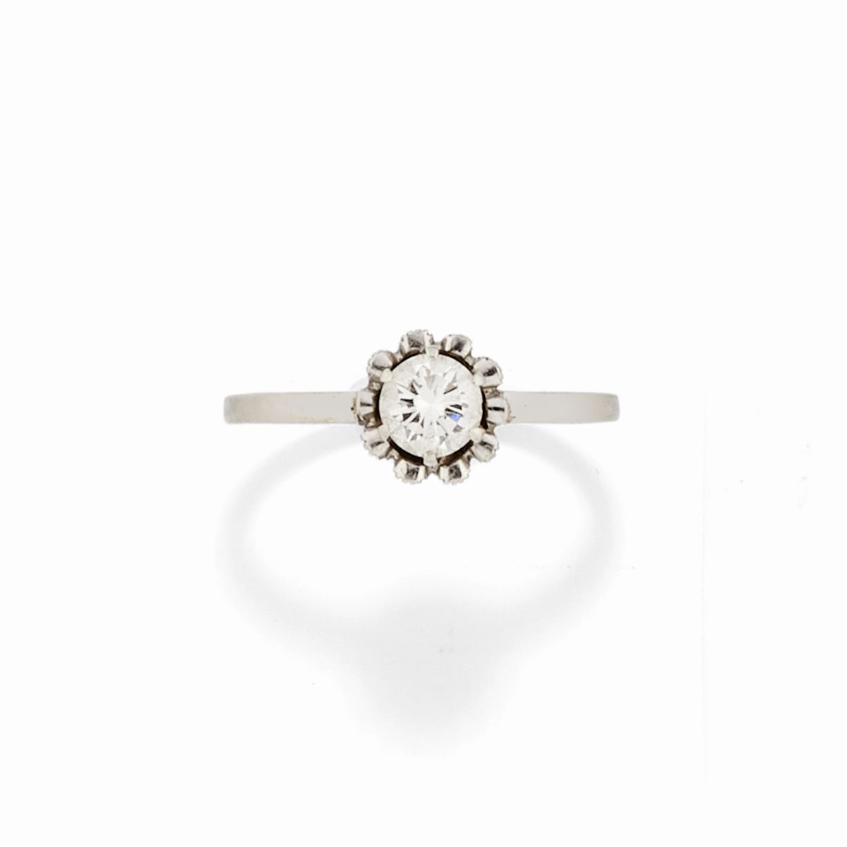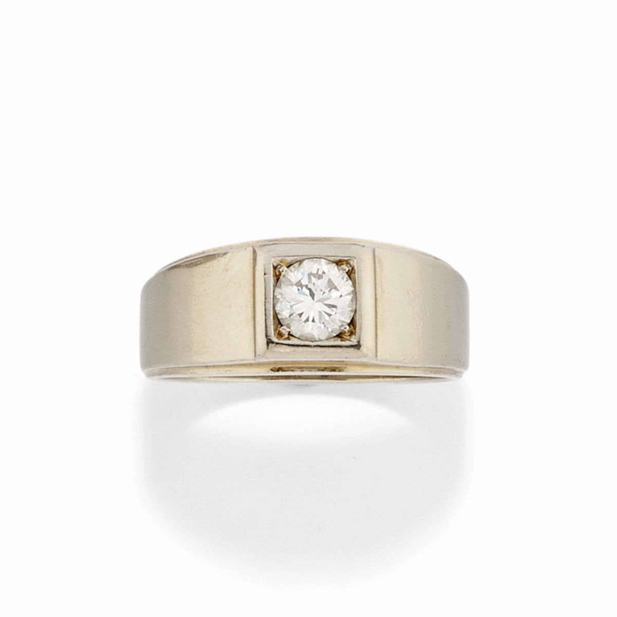 in oro bianco 18kuno da uomo con diamante taglio brillante di ct 0,50 circa e uno a fiore con diamante taglio brillante di ct 0,40 circa