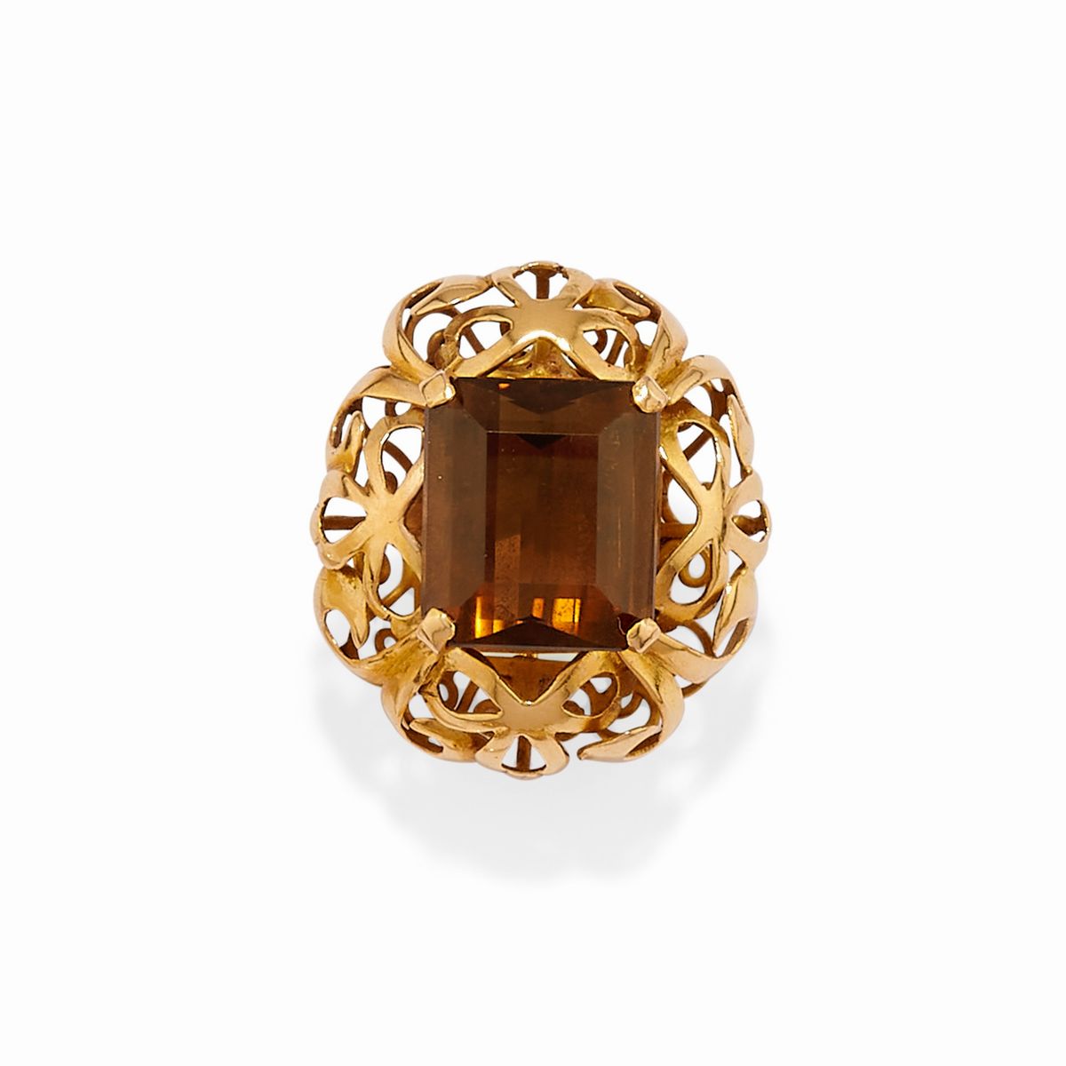 in oro giallo 18kuna con rosa in corallo bianco ed una con topazio su montatura traforata.