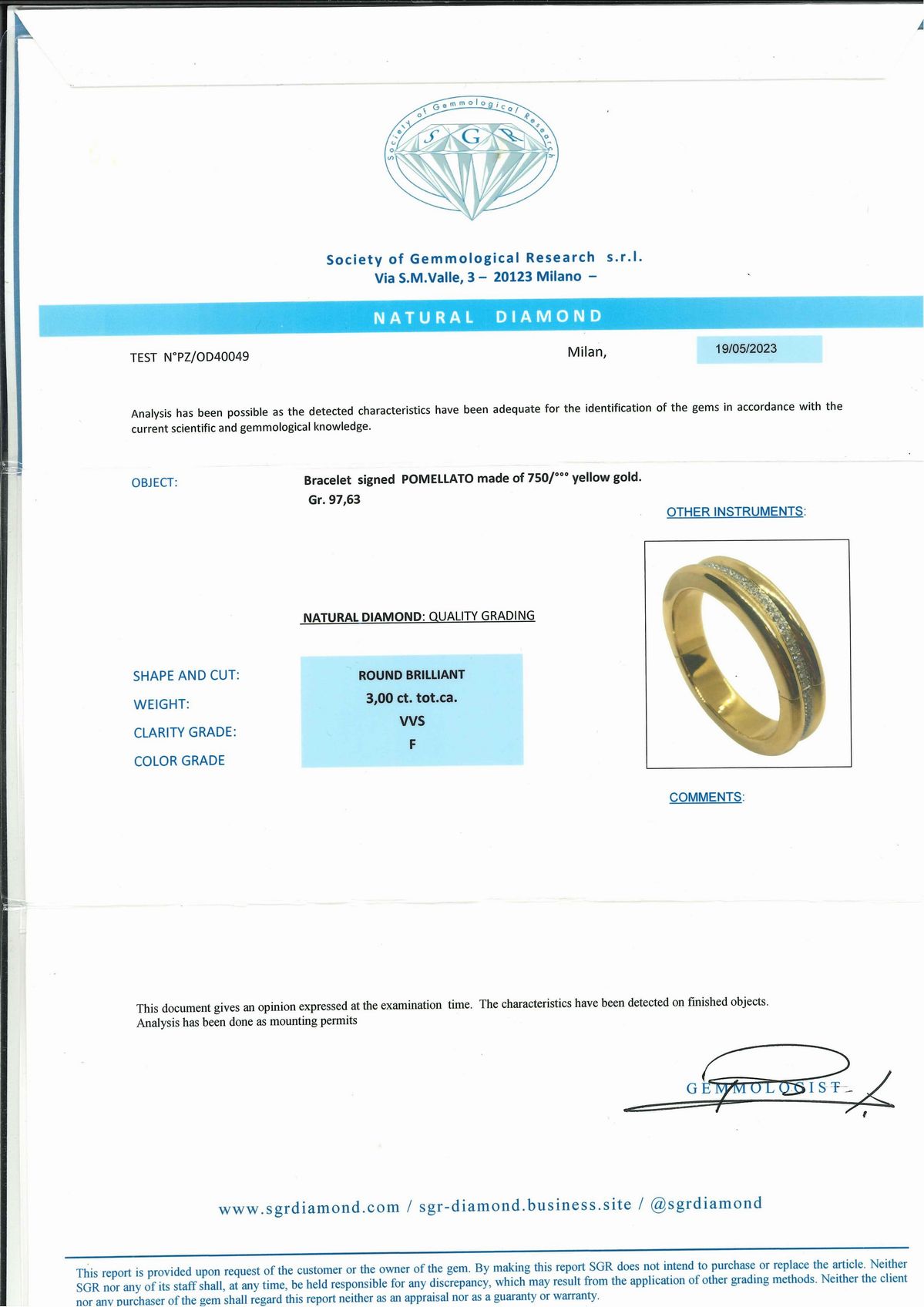 in oro bicolore 18krigido, percorso al centro da diamanti taglio brillante per totale ct 3,00 circa, colore F, purezza VVF, disposti a giro.