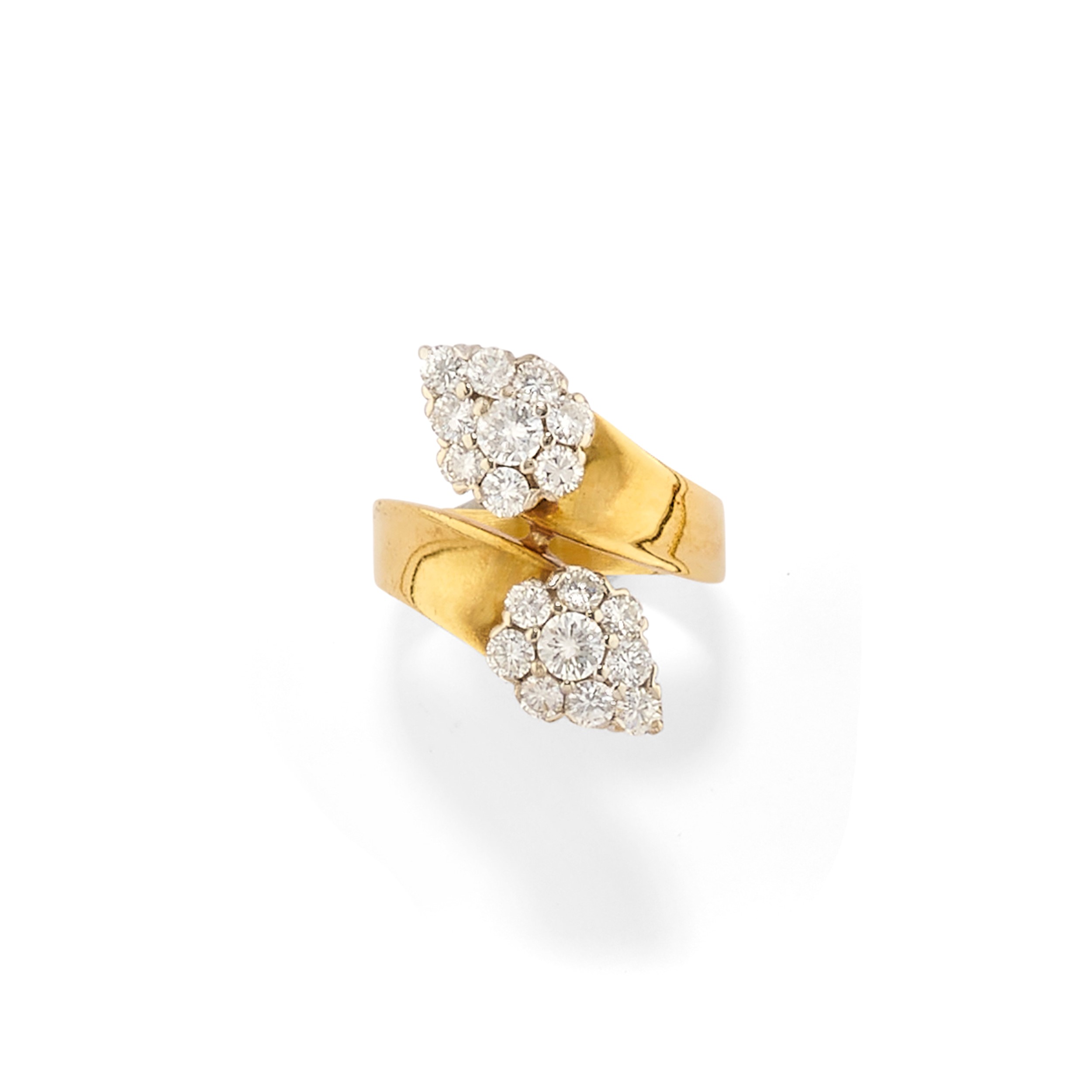 in oro giallo 18kdecorati da motivi a goccia in diamanti taglio brillante per totale ct 1,70 circa.