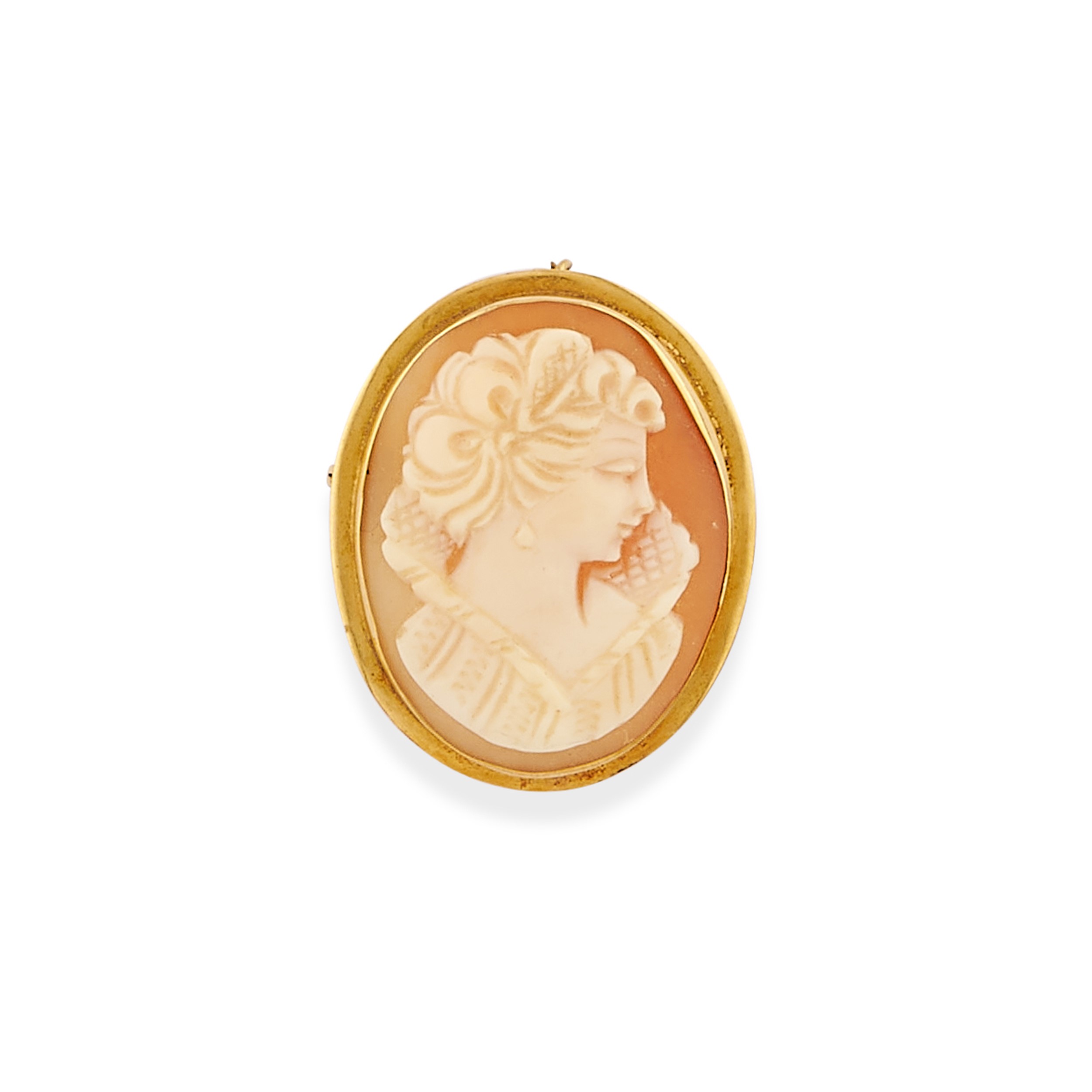 in oro giallo 18kcon cammei a profilo femminile su conchiglia, con chiusura a monachella.