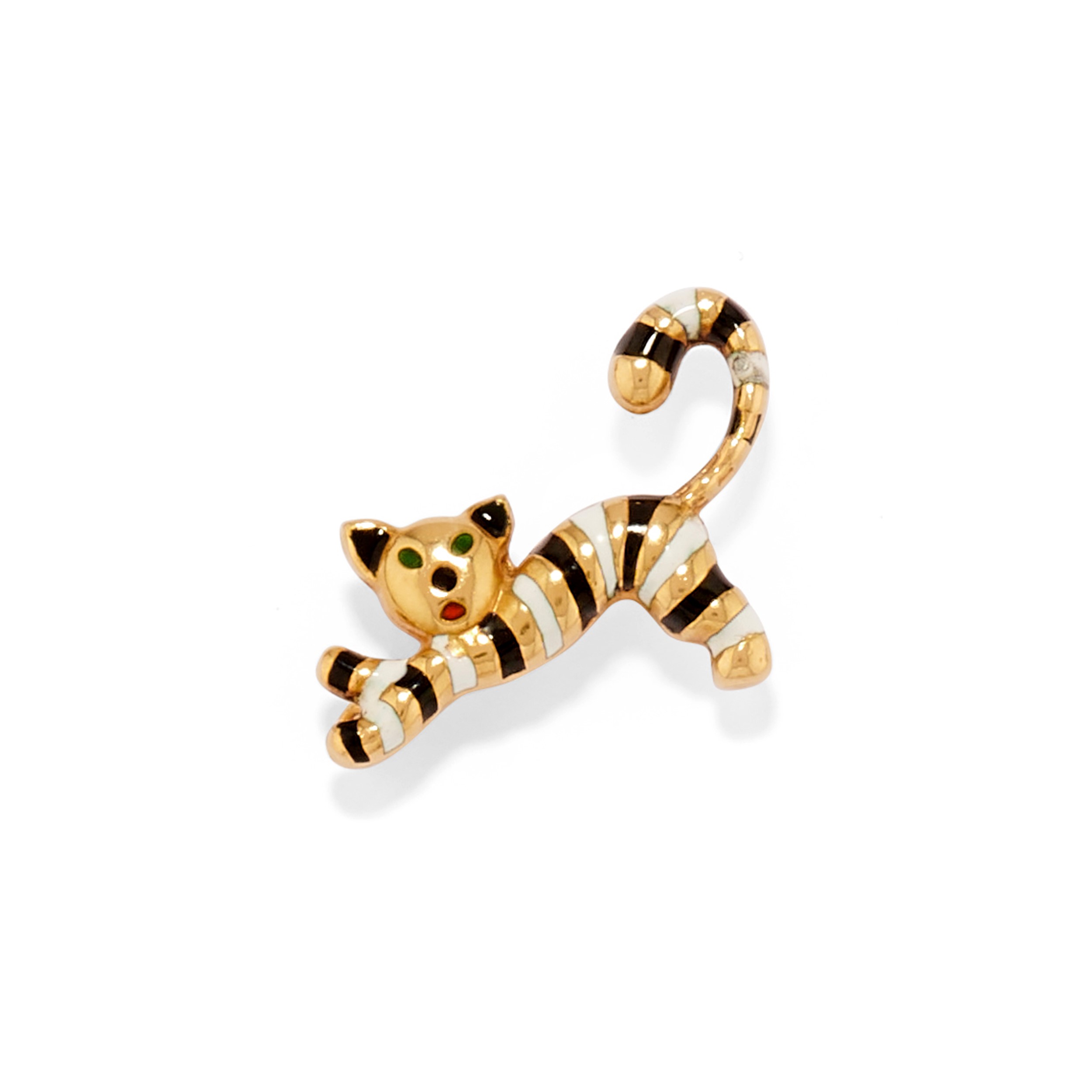 in oro giallo 18ksmalto bianco e nero, pietre verdi taglio rotondo.