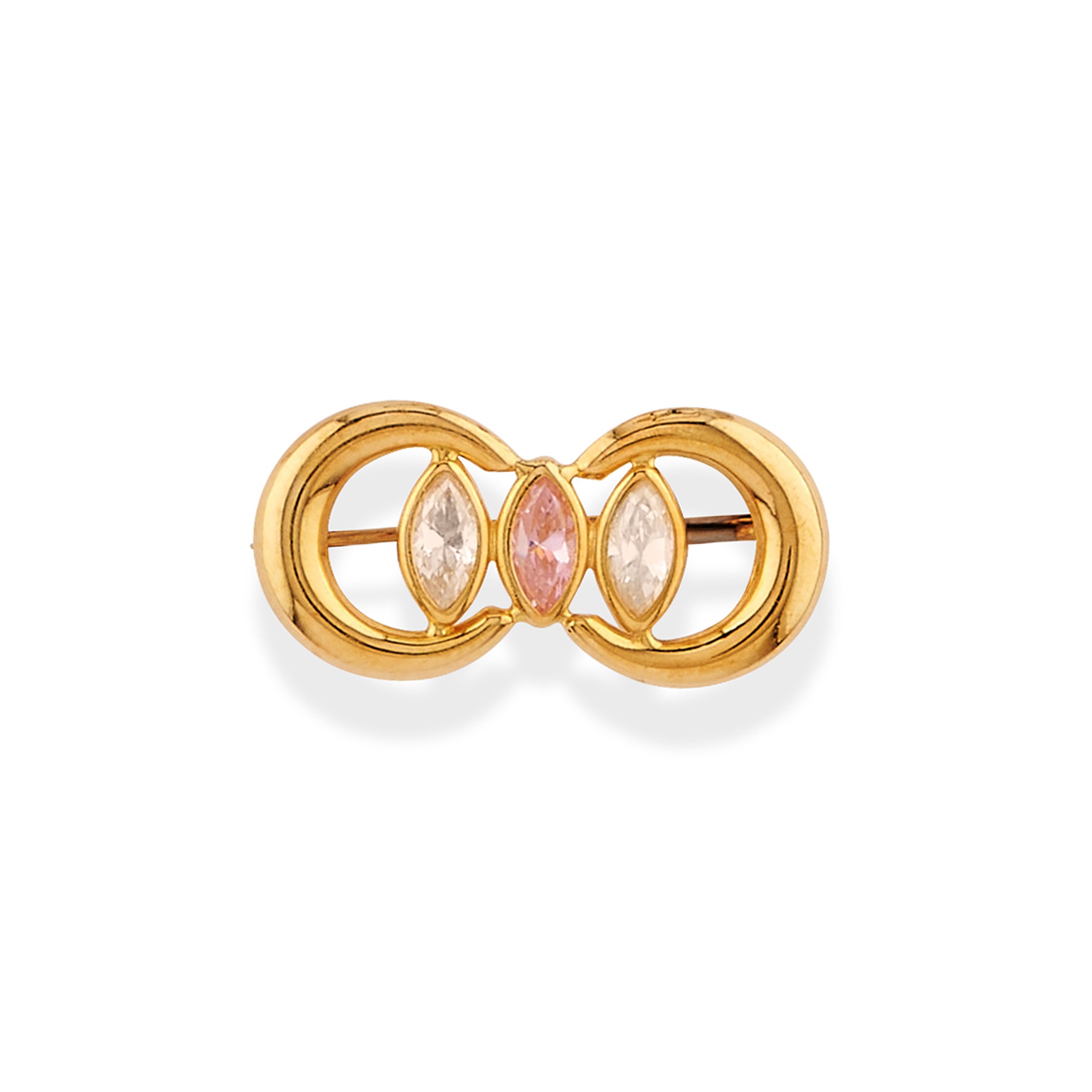 in oro bicolore 18kdi varie forme con pietre di colore ed incolori ad imitazione del diamante.