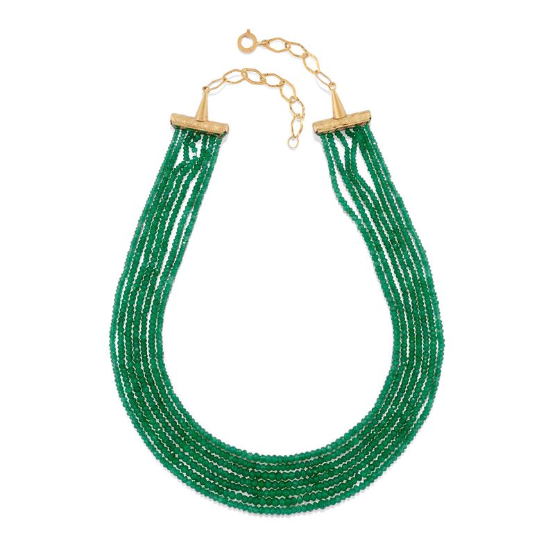 in oro giallo 18ka sette fili di smeraldi taglio briolette.