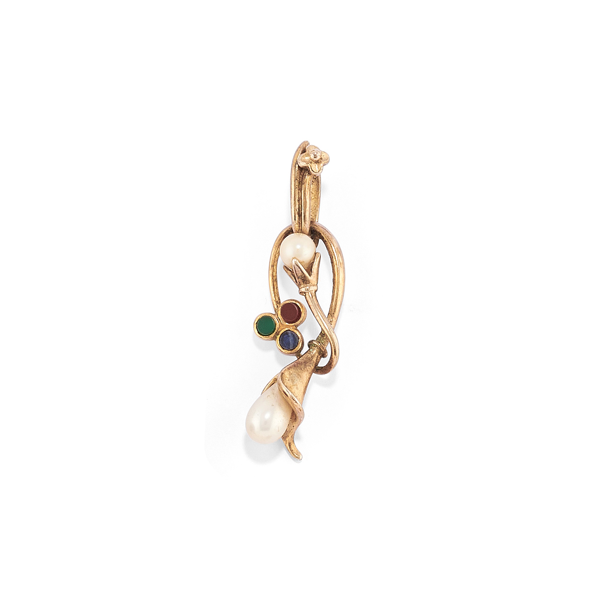 in oro giallo 18k e una spilla in argento 925composto da bracciale con boules di pietre dure (cm 23,00), orecchini con fiocco e pietre dure, chiusura perno e farfalla (cm 2,00), spilla a fiocco (cm 3,50), spilla a fiocco con pendente portafotografie (cm 5,00), pendente in argento 925 con piccole perle e paste vitree colorate (cm 4,00), anello con zaffiro taglio ovale di ct 1,00 circa e diamanti taglio baguette e brillante (misura 16), anello a contrariè con pietra incolore e prob. zaffiro taglio goccia (misura 18).