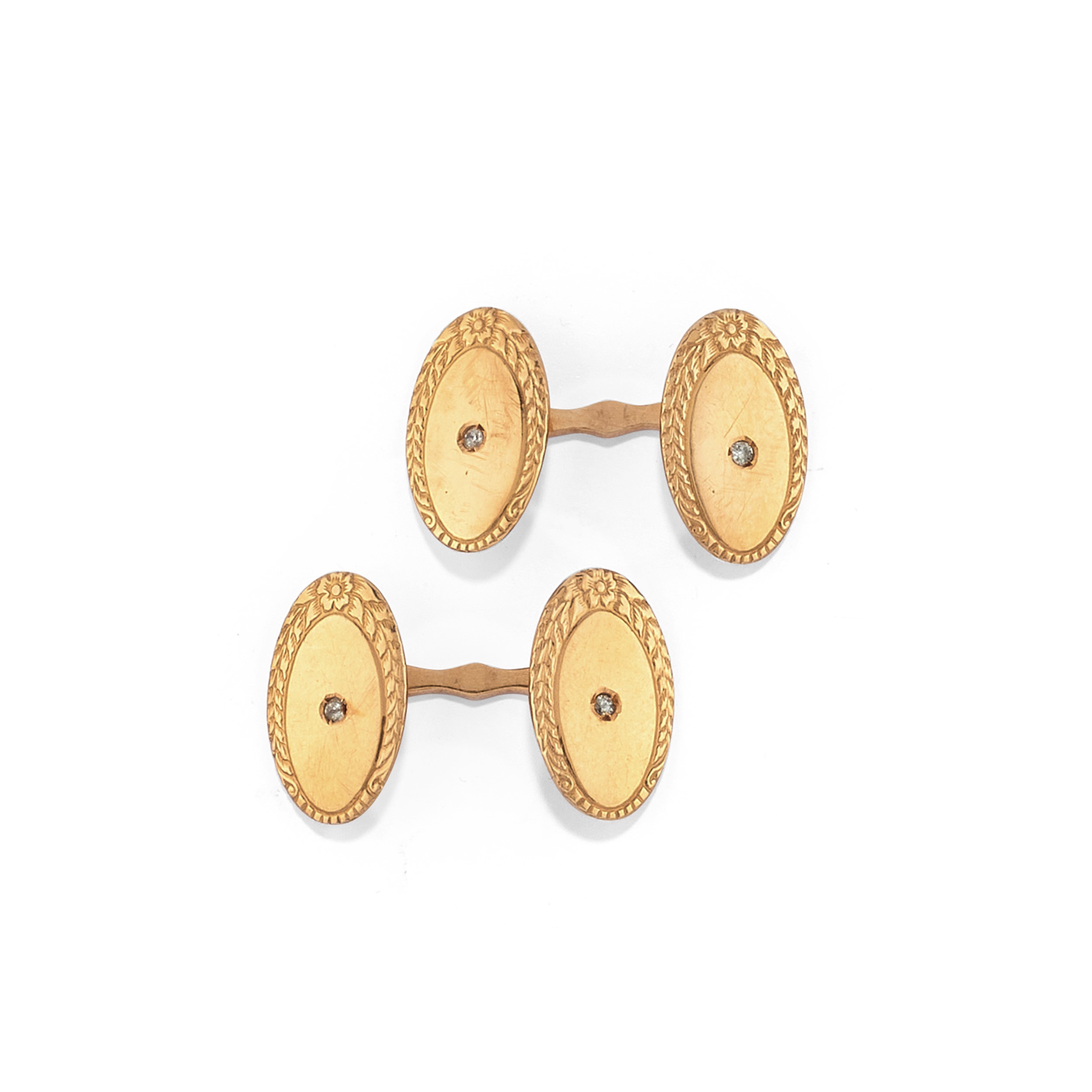 composto da tre paia di gemelli con piccoli diamanti ed un pendente raffigurante angioletto.