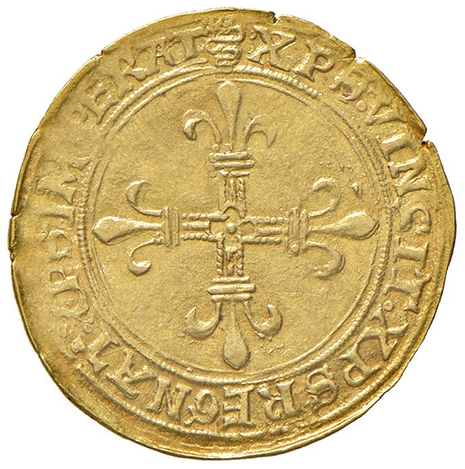 Scudo d'oro del sole. Crippa 2. MIR 260. ORO, gr. 3,38. Molto raro. BB/qSPLBase d'asta