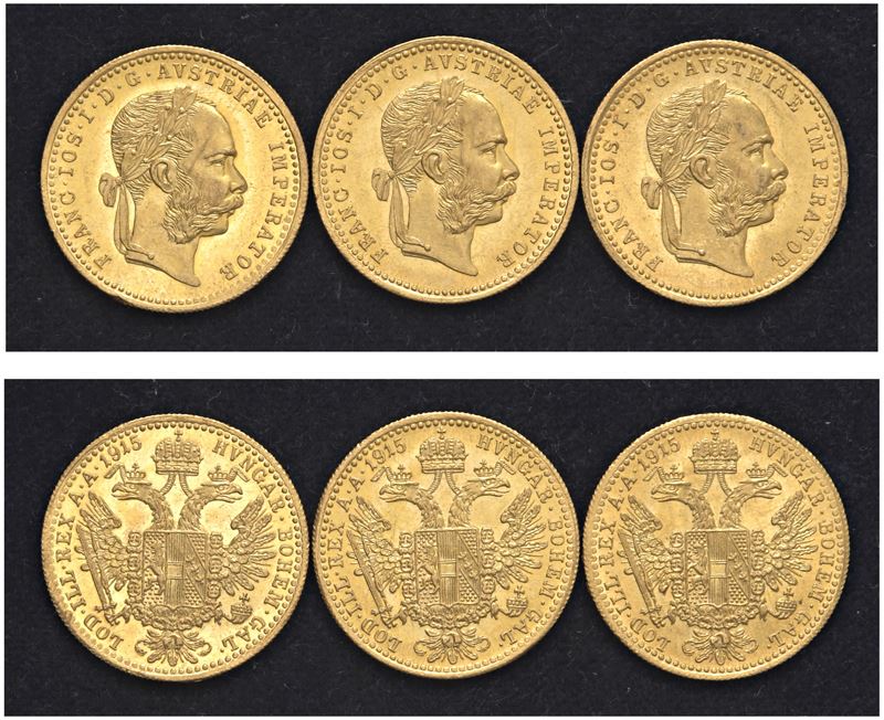 FRANCESCO GIUSEPPE I D'ASBURGO (1848-1916) - 3 esemplari di ducato 1915.