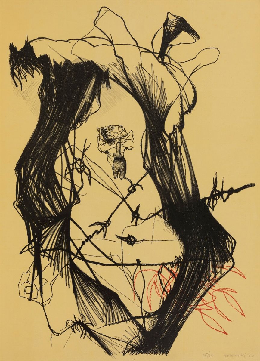 AA. VV. Sei litografie originali in bianco e nero di Guerreschi firmate e numerate dall'autore in Il Torchio, Edizioni Litografiche del Grattacielo, Milano, s.p.
