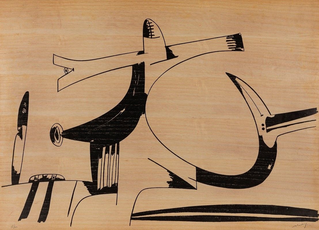 6 litografie a colori su impiallacciatura, ess. 21/40, 23/40, 28/40, 36/40, 36/40