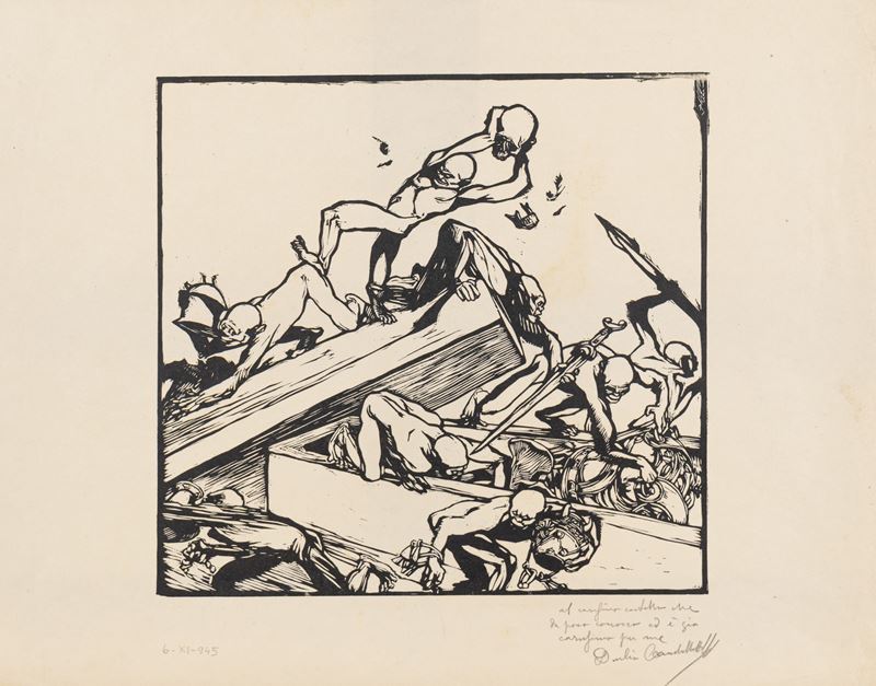 Firma a matita in basso a destra con una dedica datata 6-XI-945