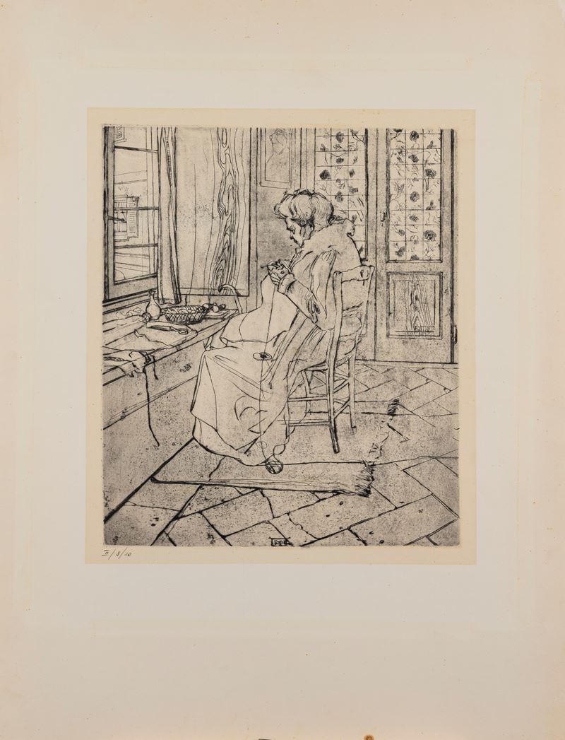 Al verso iscrizione di Giuseppe Dal Pian (erede dell'artista): Questa acquaforte di Umberto Boccioni "La mamma che lavora" è originale di seconda tiratura es. 8/10