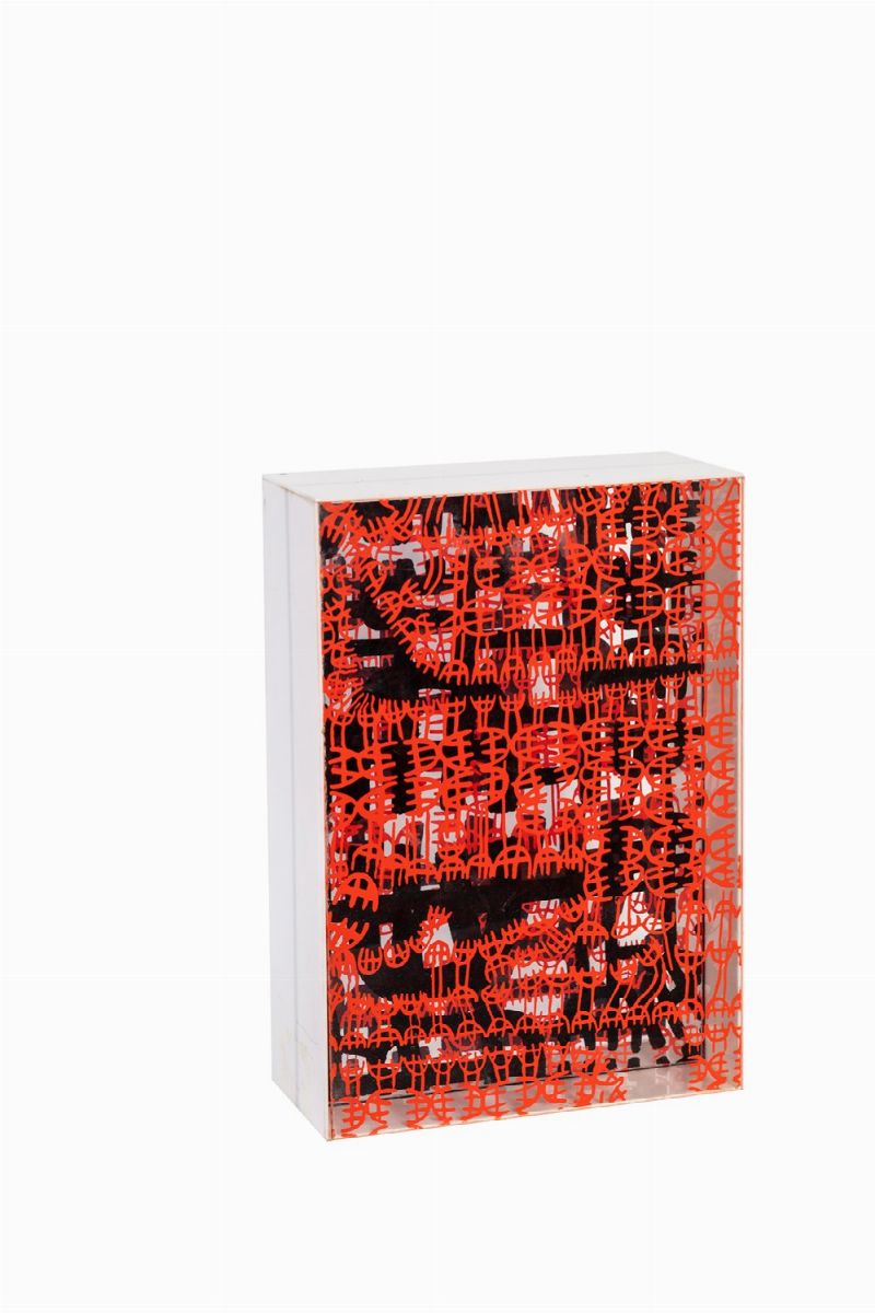 serigrafia su plexiglass, es. 58/60 (dalla tiratura complessiva di 60 ess.), cm 31,5 x 21,5 x 10
