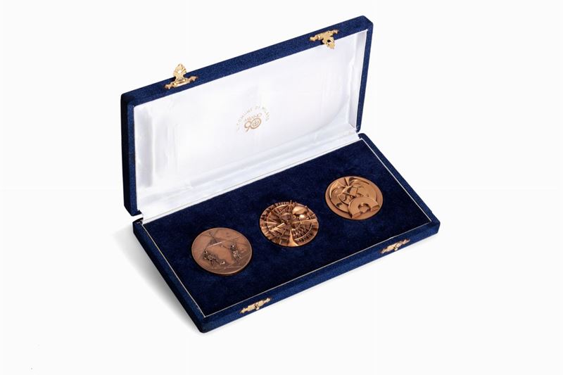 tre medaglie in bronzo eseguite da Tommaso Cascella, Agenore Fabbri, Arnaldo Pomodoro, ess. 186