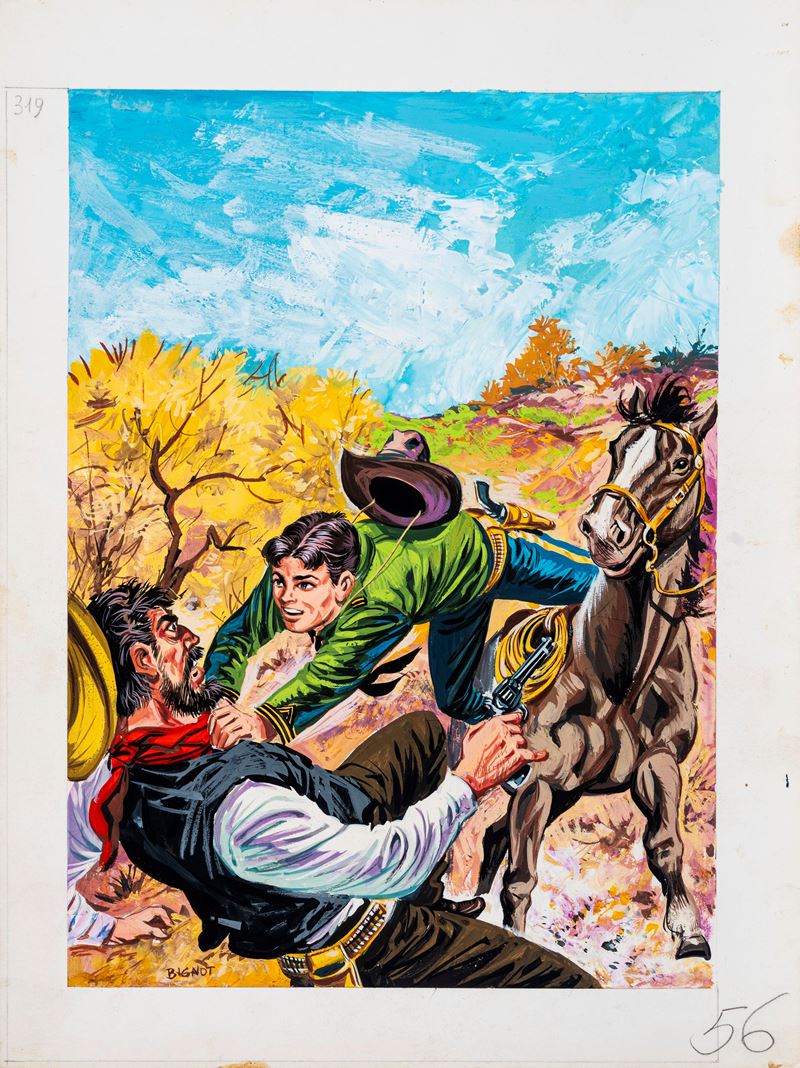 Originale di copertina realizzato da Bignotti per "Una vita in pericolo", edito su Gli albi di Capitan Miki n. 319 dalla Editrice Dardo nel 1968. Firmato.