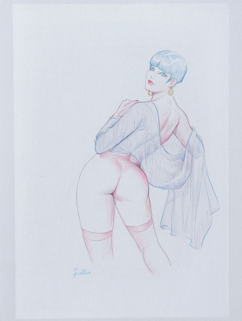 Illustrazione originale realizzata da Frollo negli anni '80, utilizzata come copertina del volume "Le donne di Leone Frollo" edito da Lo Scarabeo nel 2003. Firmata.