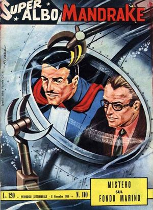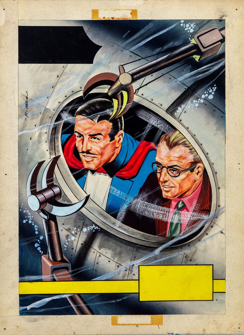 Originale di copertina realizzato da Caria per " Mistero sul fondo marino", edito nella collana Super Albo Mandrake n. 110 dalle Edizioni Fratelli Spada nel 1964. Caria è stato l'autentica colonna portante per le copertine dei Fratelli Spada, che negli anni '60/'70 rilanciarono in Italia personaggi come Cino e Franco, Gordon, Mandrake, il Principe Valiant e l'Uomo Mascherato. Fori di affissione ai margini. Firmato.