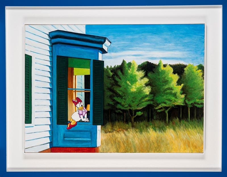 Dipinto originale realizzato da Cavallerin nel 2017, l'incontro tra il celebre dipinto "Cape Cod Morning" di Edward Hopper e la dolce Paperina di Walt Disney. Cavallerin, nella produzione delle sue opere, attinge a piene mani a un materiale iconografico vasto che spazia dall'arte rinascimentale alle avanguardie novecentesche, dalla tradizione popolare ai fumetti di ogni tempo, riuscendo - come in quest'opera - a creare delle incredibili fusioni di generi e di epoche. Al retro è presente il certificato firmato dall'artista.