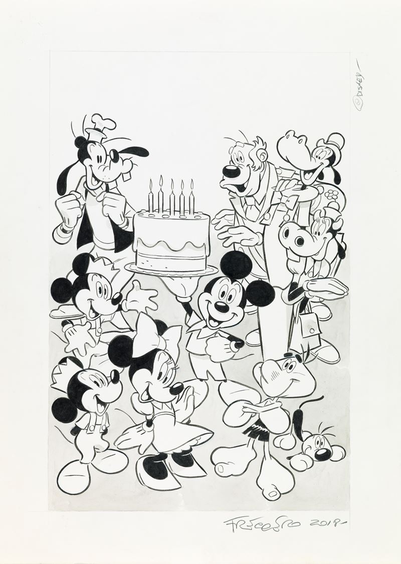 Originale di copertina realizzato da Freccero per il volume celebrativo “Mickey Mouse: The 90th Anniversary Collection”, edito negli Stati Uniti dalla IDW Publishing nel 2019. Firmato e datato.