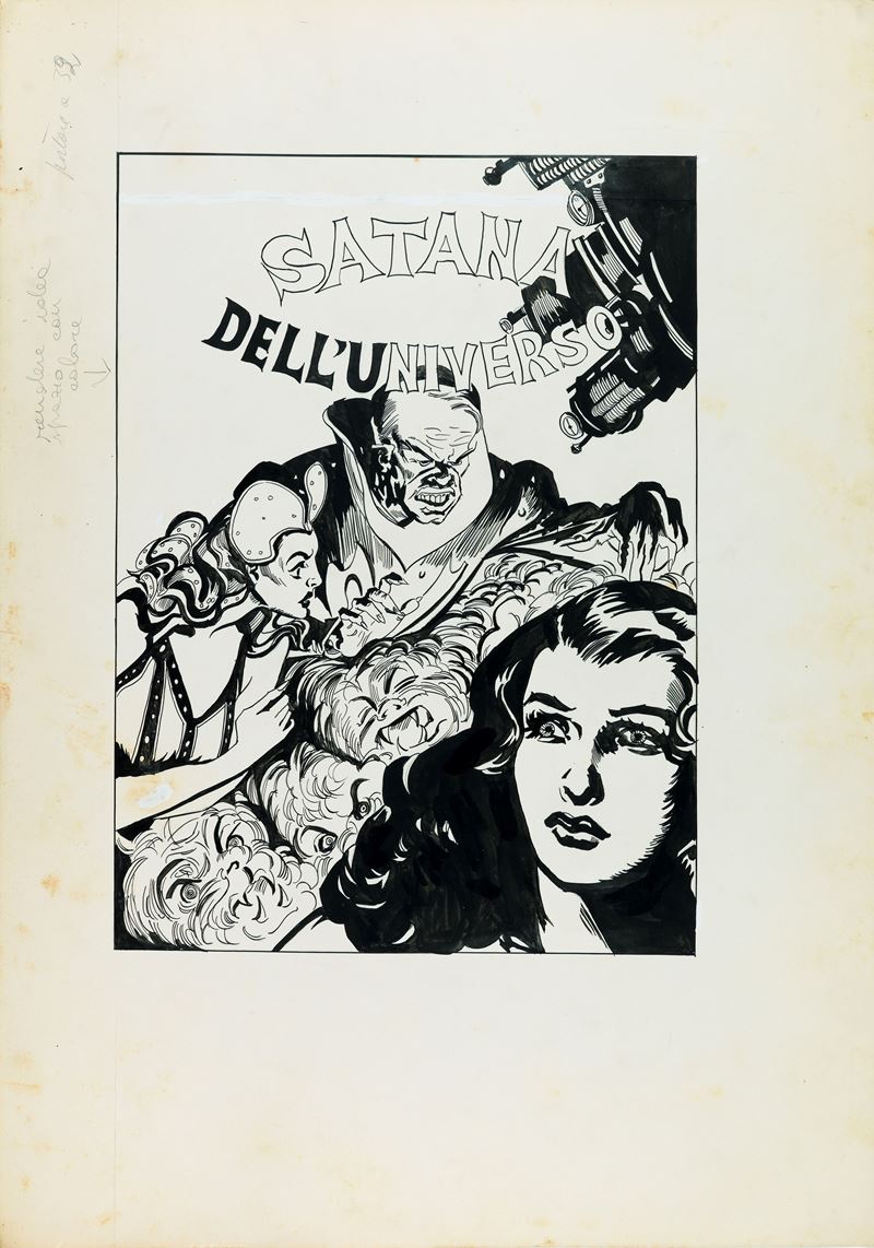 Originale di copertina per il volume "Satana dell'universo", edito nella collana Albi dell'avventura n. 186 da Camillo Conti Edizioni nel 1980. Piccolo strappo al margine sinistro.