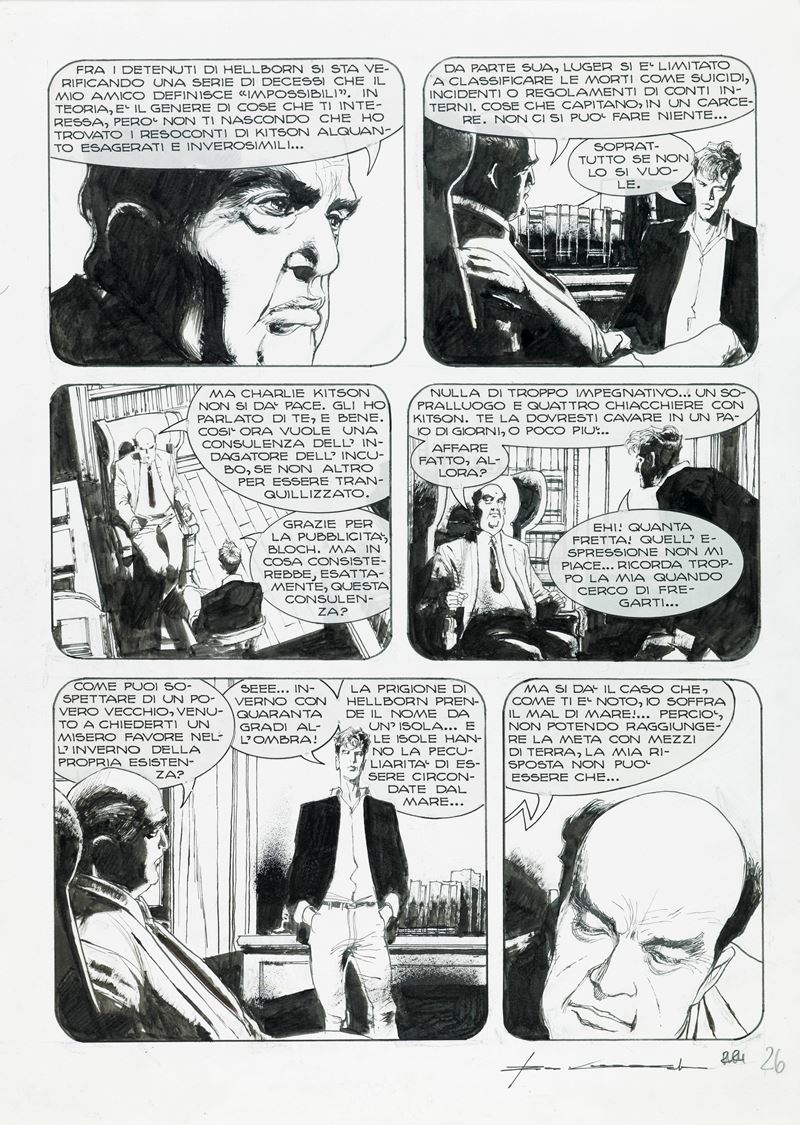 Tavola originale realizzata da Roi per "I peccatori di Hellborn", edita su Dylan Dog Gigante n. 10 a pag. 26 dalla Bonelli nel 2001. Firmata.