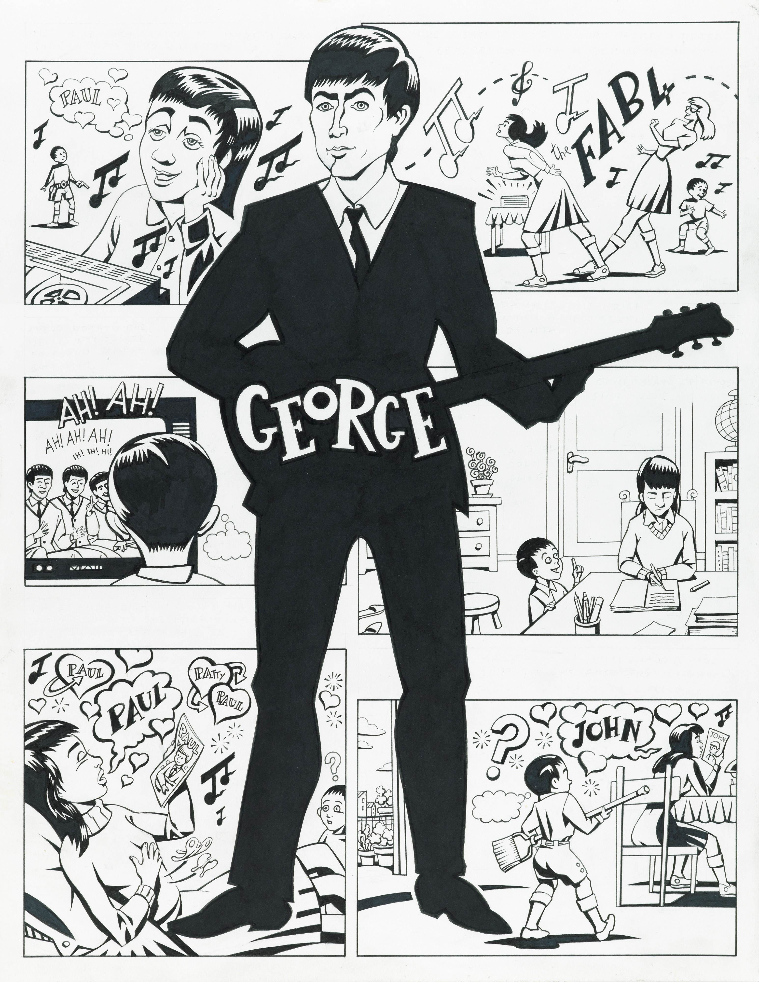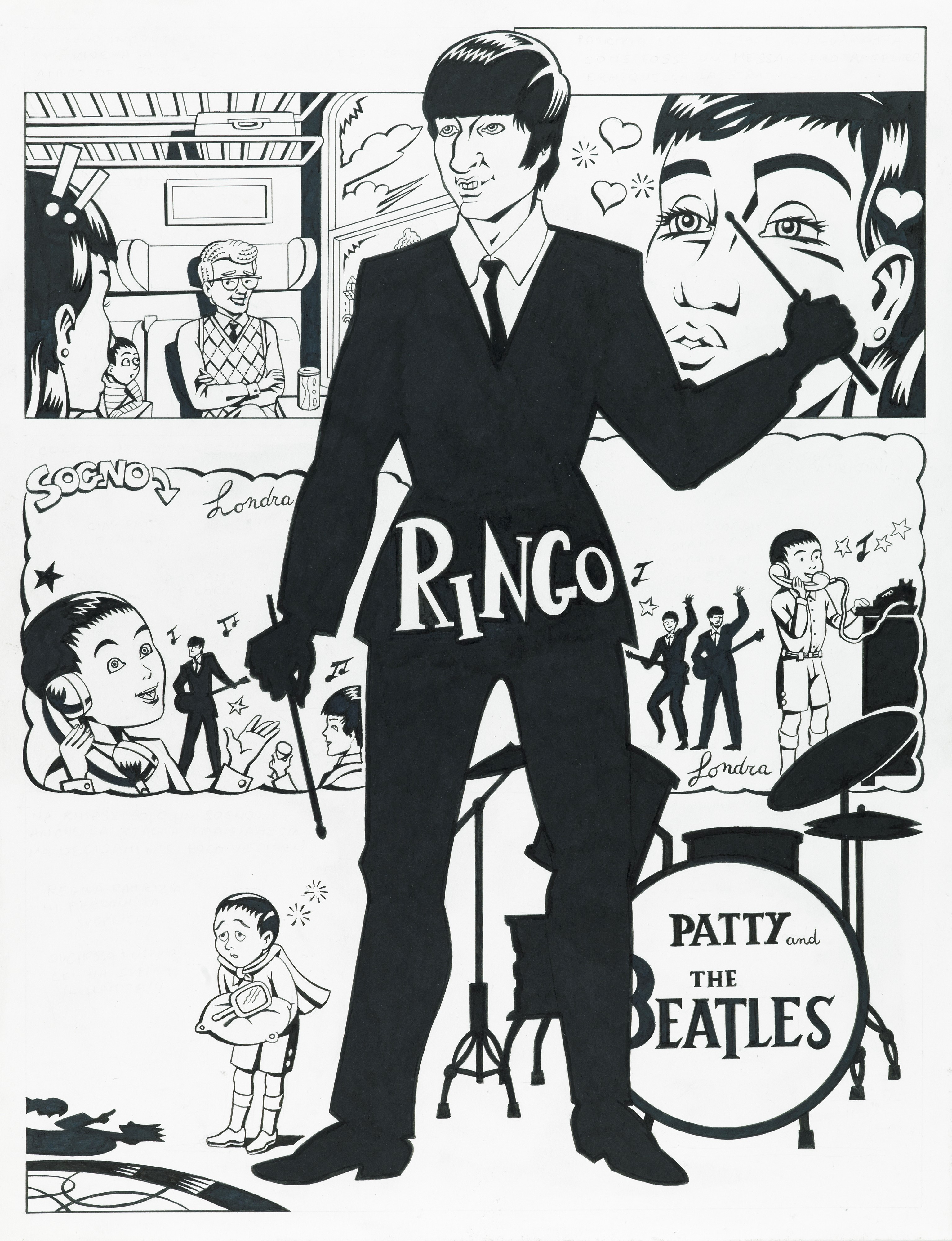 Storia completa composta da 4 tavole originali realizzate da Carpinteri per "Patty and The Beatles", edita su Linus n. 12 nel 2020. Un omaggio autobiografico ai Fab Four di Liverpool.