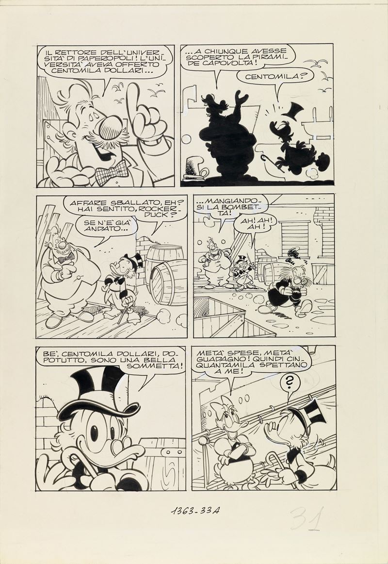 Tavola originale realizzata da Cavazzano per "Zio Paperone e la piramide capovolta", edita su Topolino n. 1463 a pag. 31 nel dicembre 1983.